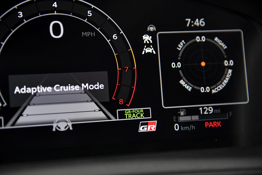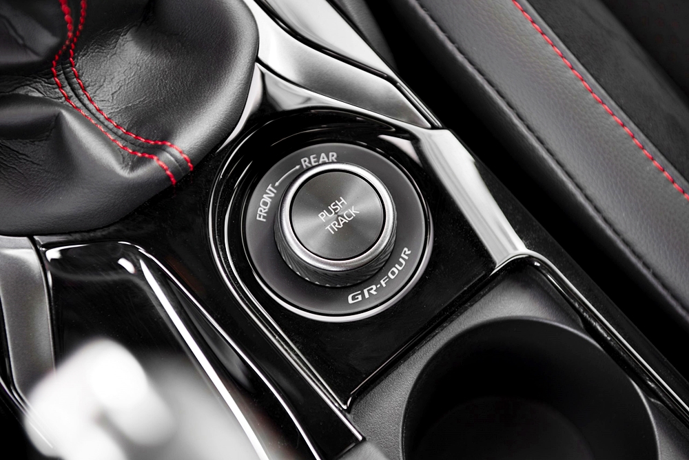 - Sistem GR-FOUR All-Wheel-Drive (AWD) boleh dilaraskan dengan nisbah agihan tork 60:40, 50:50 atau 30:70, antara roda depan dan belakang.