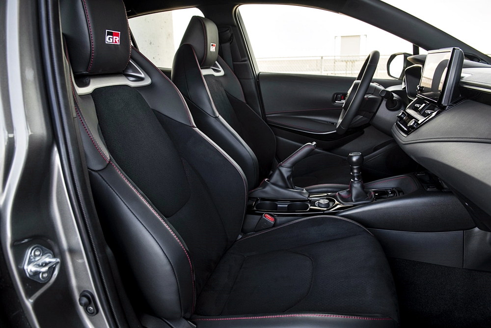 - Mengenai warna, GR Corolla Core menawarkan pilihan Ice Cap (putih), Black (hitam) dan Supersonic Red (merah), manakala ruang kabin dilengkapi kerusi sport fabrik GR.