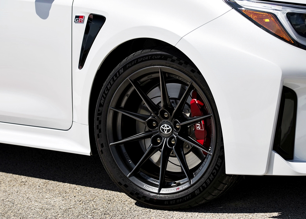 - Sebagai model asas, pembeli GR Corolla Core ditawarkan pakej Performance dengan ciri tambahan Diferensial Gelincir Terhad (LSD) Torsen di depan dan belakang, kaliper brek aluminium merah 4-piston dan logo GR serta cakera depan 14 inci x 1.1 inci.