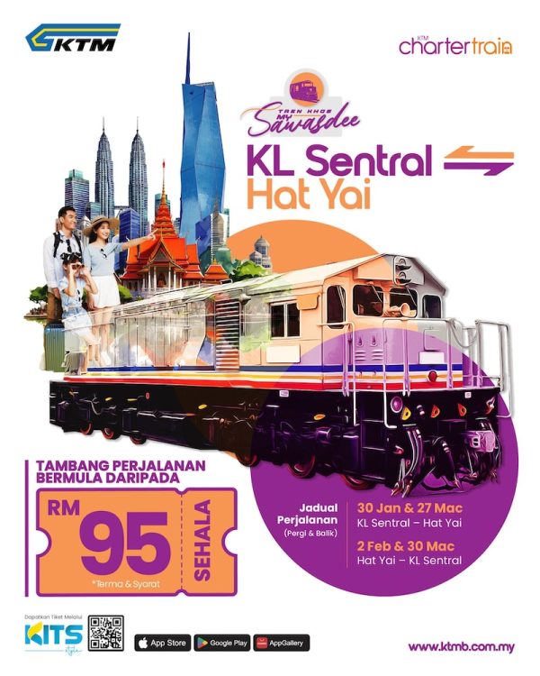 PERKHIDMATAN tren pelancongan popular MySawasdee kembali untuk 2026 dengan menawarkan perjalanan terus dari Kuala Lumpur ke Hat Yai, Thailand, menerusi jualan tiket bagi tempoh Januari hingga Mac 2026 dibuka bermula 2 Januari 2026, jam 10 pagi.