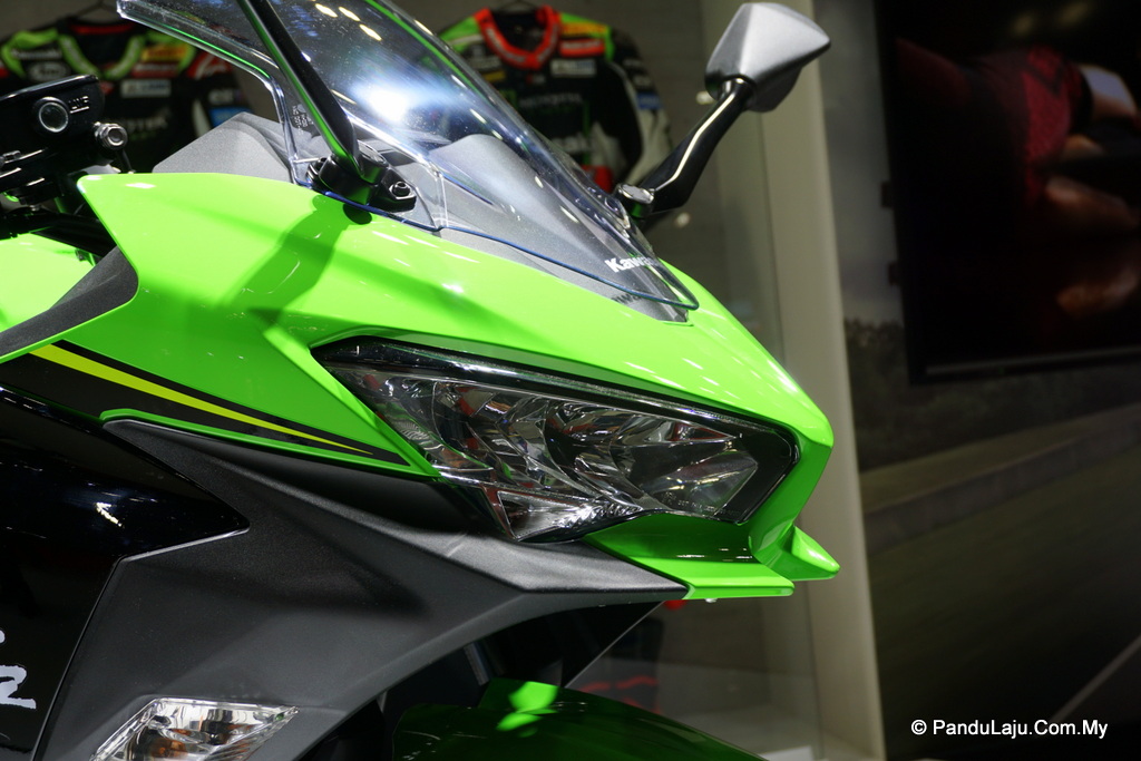 Rekabentuk badan yang lebih ‘sado’ diilhamkan daripada model flagship Ninja H2. Ini secara tidak langsung menyerlahkan visual sebuah jentera berpenampilan lebih besar dan lebar berbanding model terdahulu. Malah dibekalkan bersama deflektor angin.