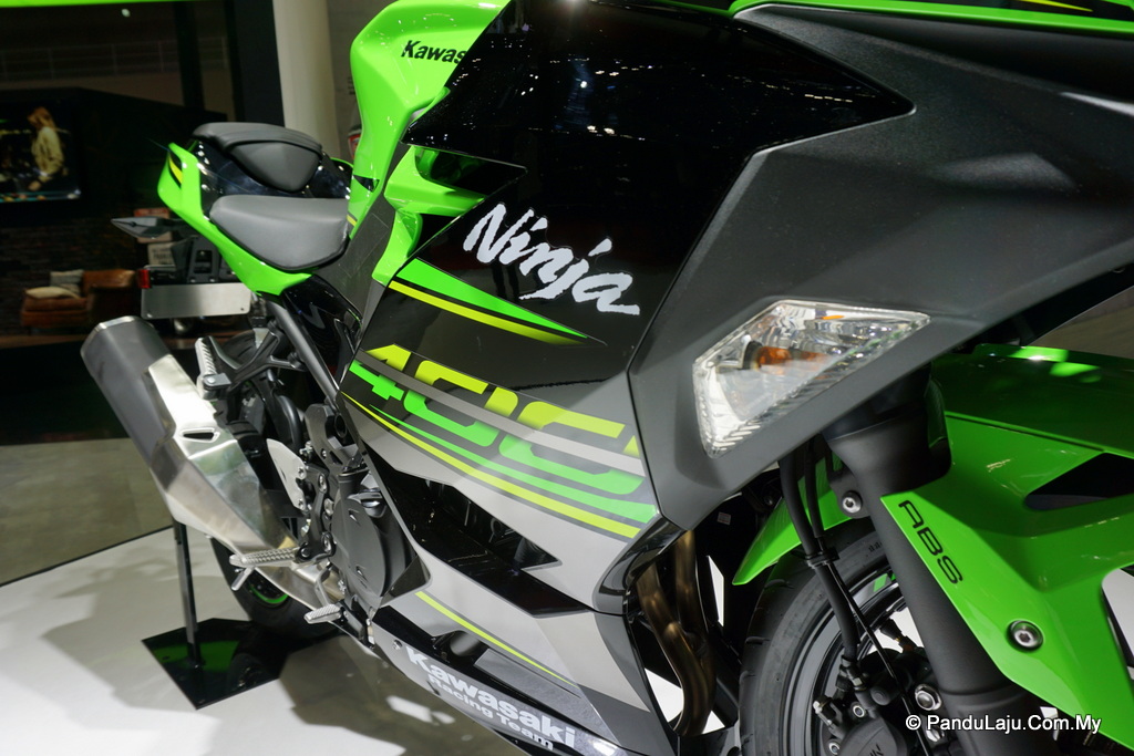 Selain itu, Ninja 400 turut dilengkapi ciri klac assist-and-slipper yang berfungsi melancarkan proses penukaran gear. Terdapat juga ciri baharu lain, iaitu soket pengecas 12V yang ketika ini banyak ditawarkan model skuter. Di pasaran, Ninja 400 boleh dipilih dalam tiga warna menarik, iaitu Metallic Spark Black (hitam), Lime Green (hijau) dan Edisi Ebony KRT.