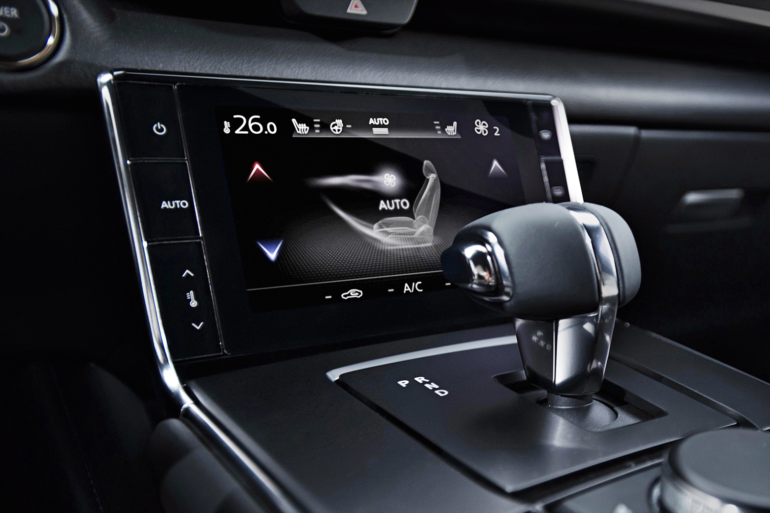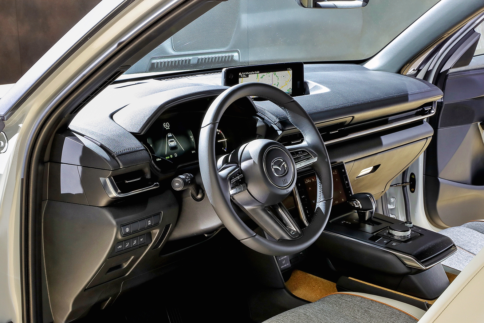 Ruang dalam kereta tampil minimalis dan tidak terikut trend skrin LCD yang besar dan panjang. Ada dua skrin disediakan, satu di depan tombol gear dan satu lagi atas papan pemuka. Mazda juga buat kali pertama tidak menyediakan butang fizikal penyaman udara, sebaliknya digantikan dengan kawalan sentuh pada skrin di depan tombol gear.