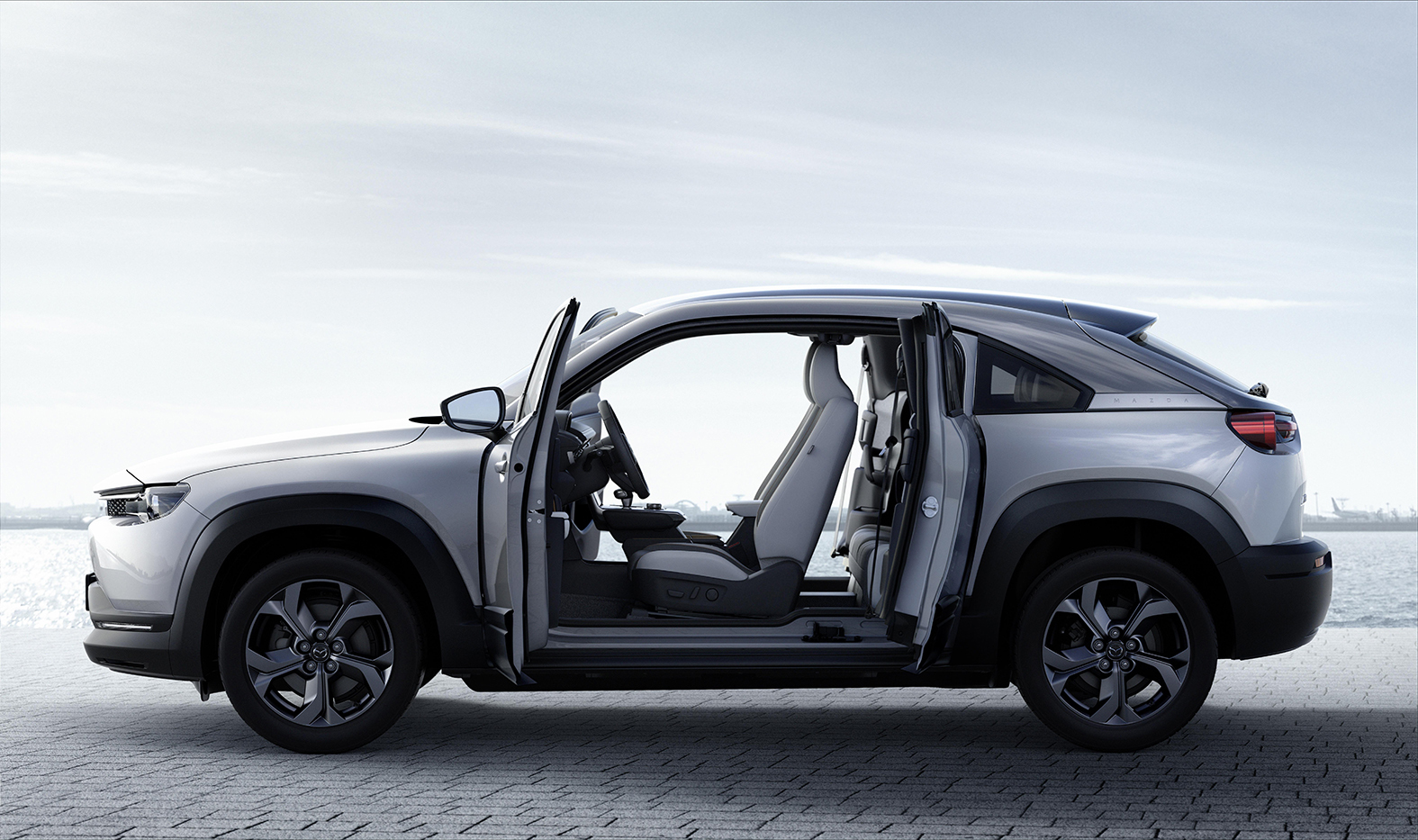 Profil MX-30 lebih kepada crossover dua pintu, tetapi dengan bonus dua pintu untuk penumpang belakang. Tiada pilar-B antara pintu depan dan belakang, dan ini memudahkan penumpang untuk akses keluar dan masuk. Secara keseluruhan, MX-30 adalah tafsiran Mazda tentang rekabentuk EV yang unik dan funky dalam gaya bahasa jenama itu.