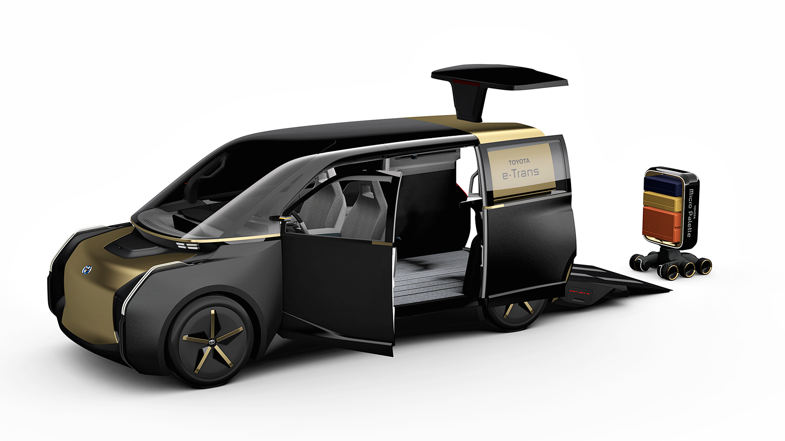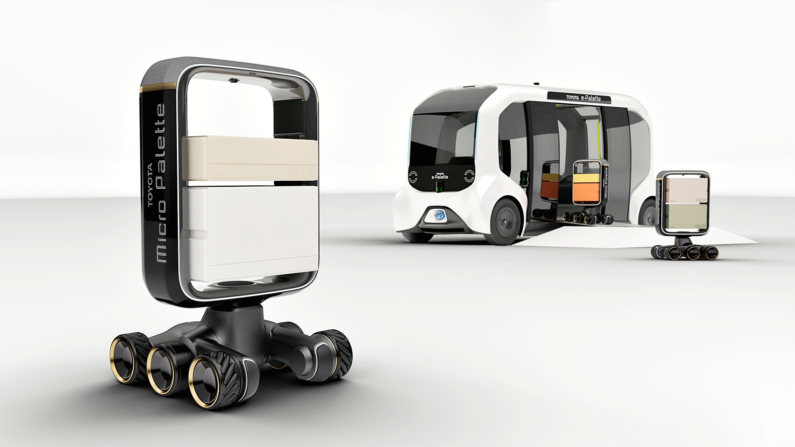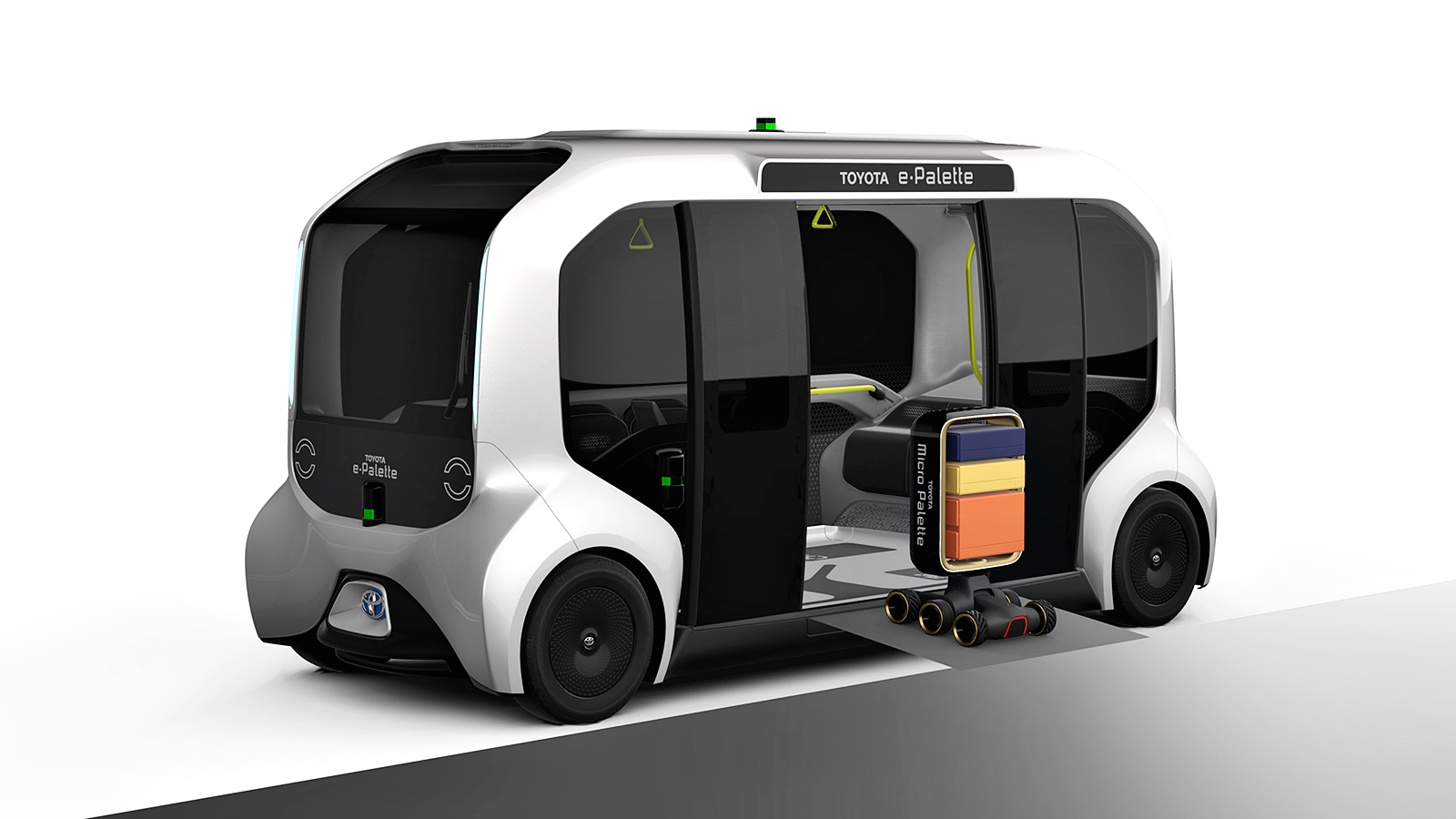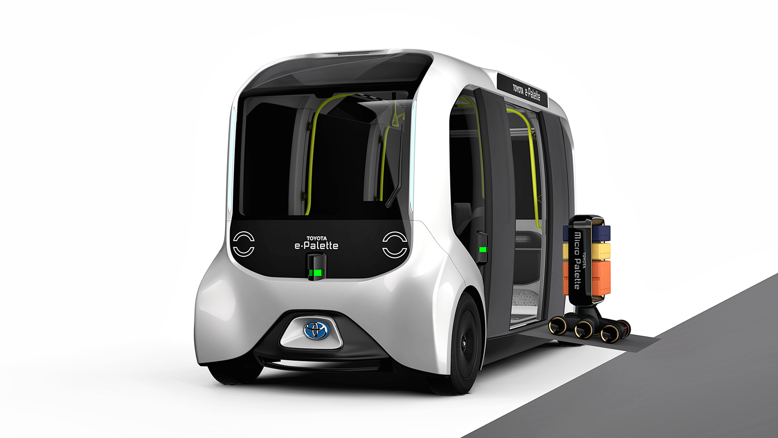 - e-Palette – Kenderaan tanpa pemandu yang mempunyai fungsi hiburan dan ruang untuk manusia menikmati hobi dan turut menawarkan servis.