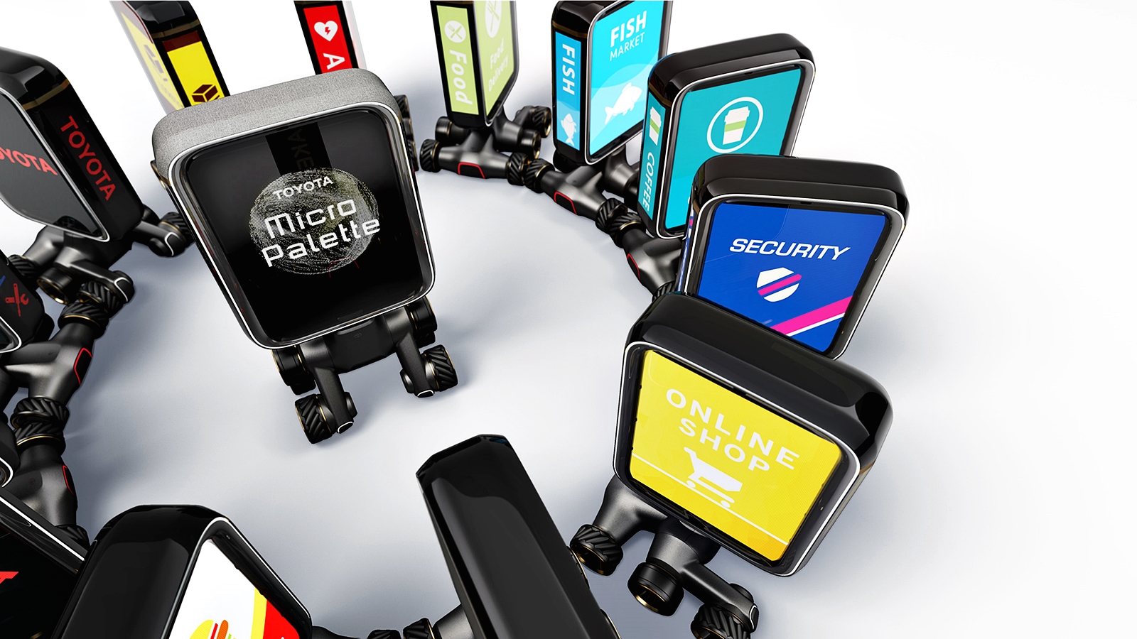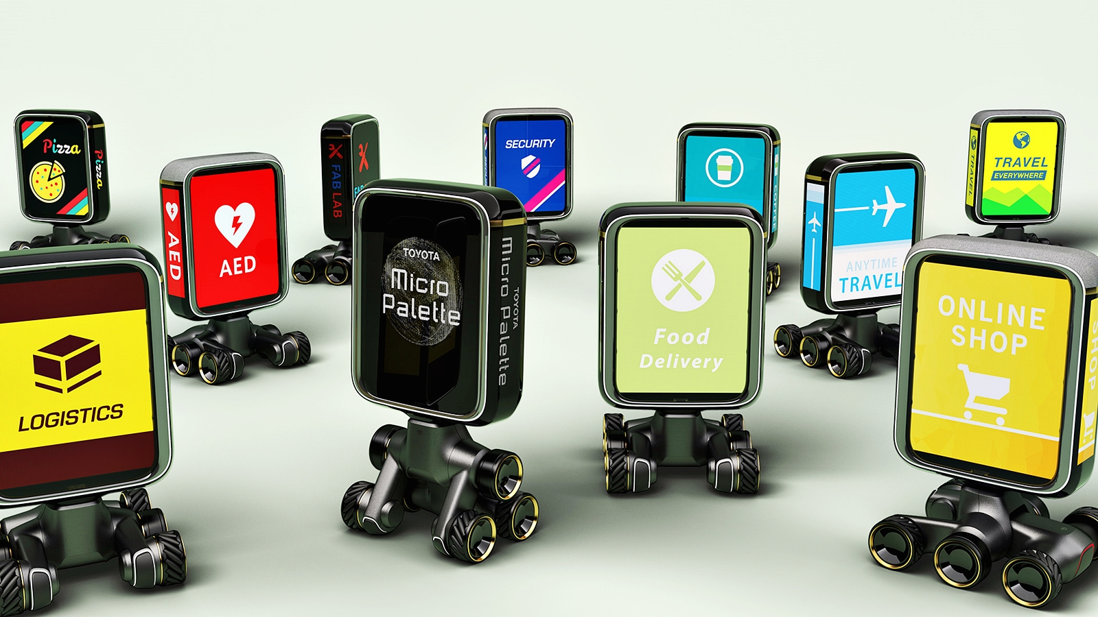 - Micro Palette – Robot penghantar barangan kecil seperti ubat-ubatan dan makanan kepada orang disayangi. Diprogramkan untuk mempunyai perasaan.