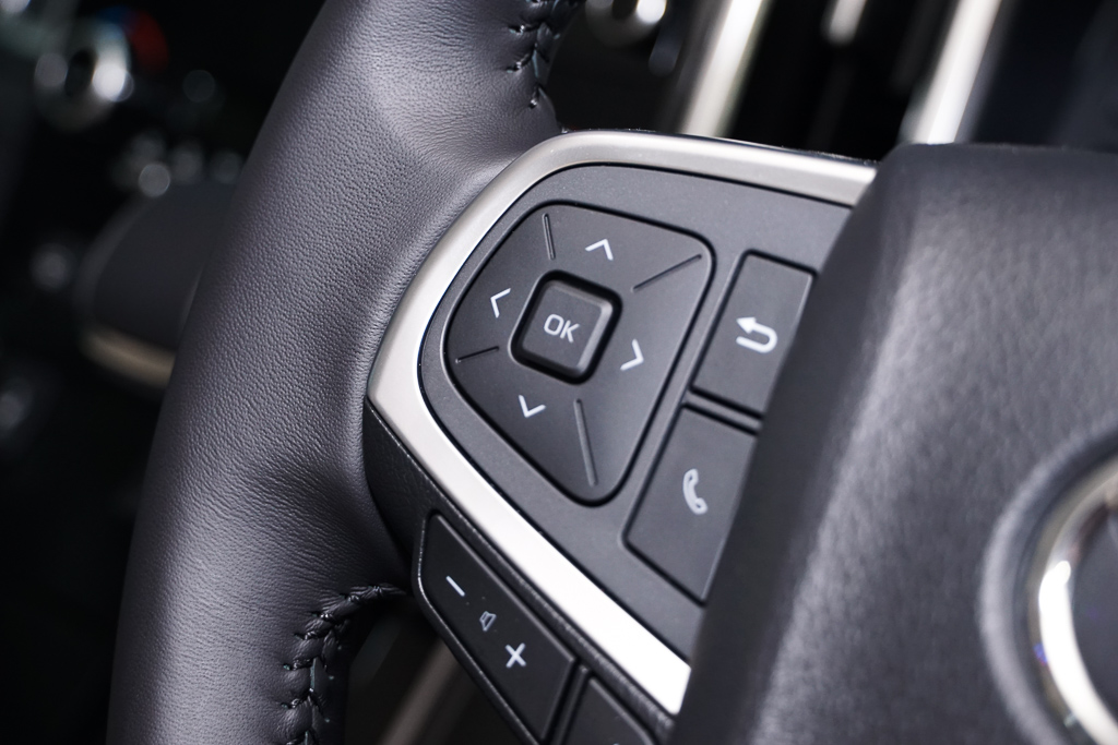 Panel instrumen hitam membangkitkan suasana kemewahan yang diserlahkan dengan aksen metalik pada ventilator penyaman udara dan kemasan ira kayu pada stereng (dengan balutan kulit disulam), papan pemuka, dan panel pintu.