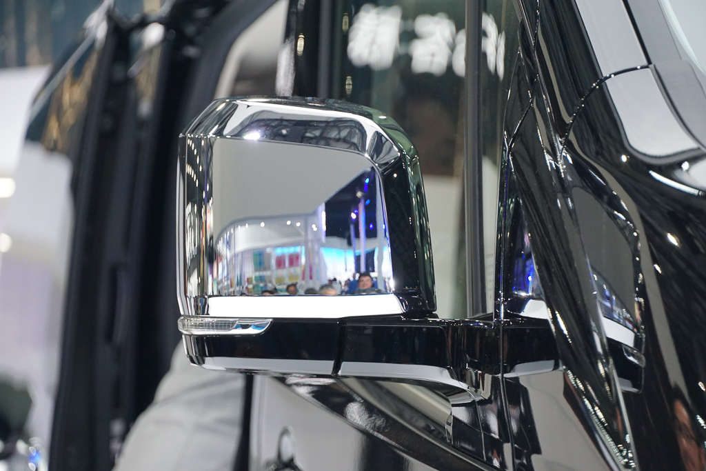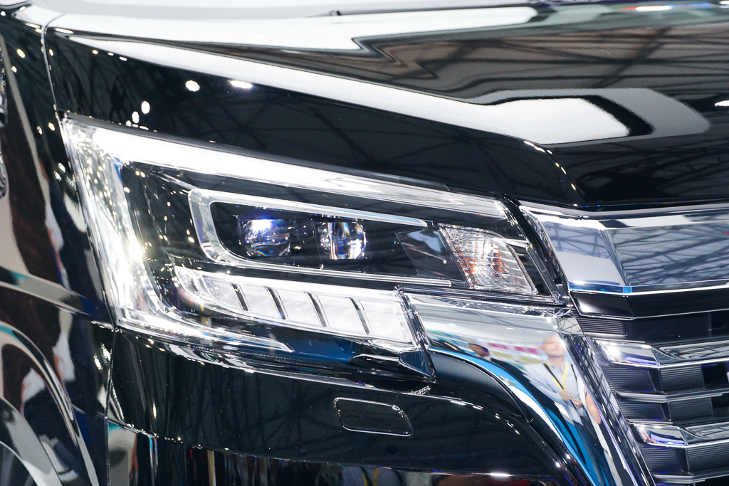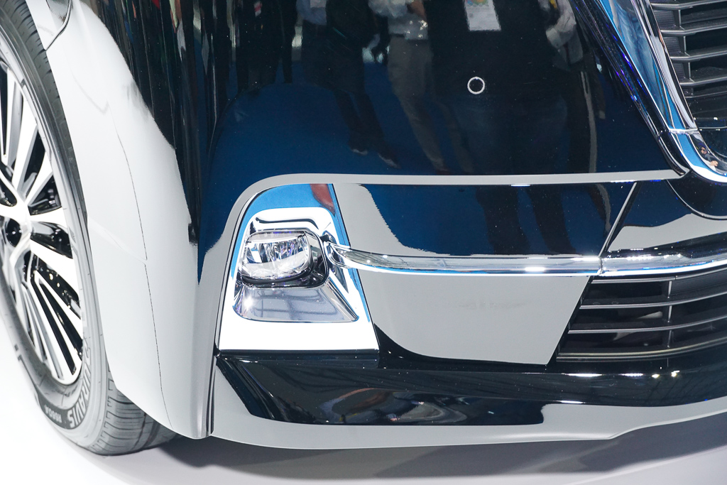 Gril radiator besar diberikan aksen metalik yang mengalir dan bersatu dengan lampu utama lensa kembar dalam frem krom. Lampu siang (DRL) LED menampilkan rekaan unik, manakala lampu kabus diberikan perumah krom bagi menyerlahkan lagi personaliti mewah MPV ini.