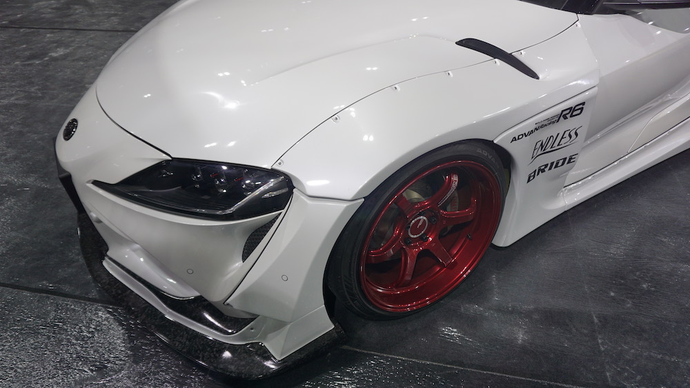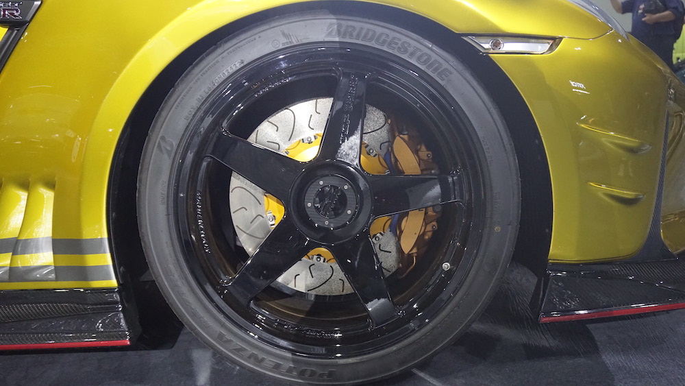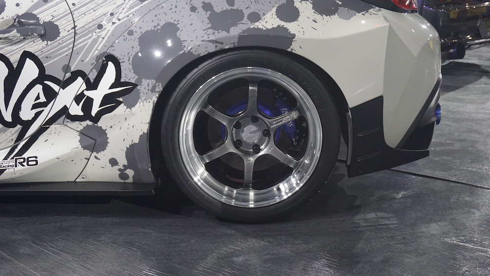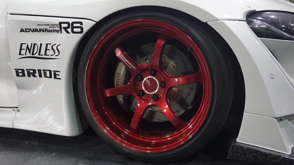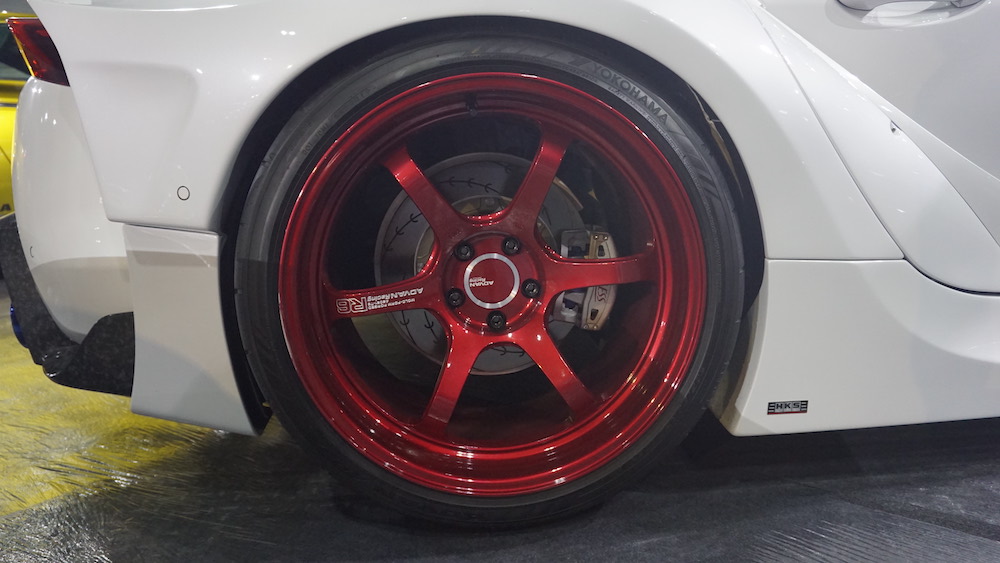 - Suspensi jenis HKS Hipermax Max IV GT dengan pegas HKS. Rim ADVAN Racing R6 20 inci.