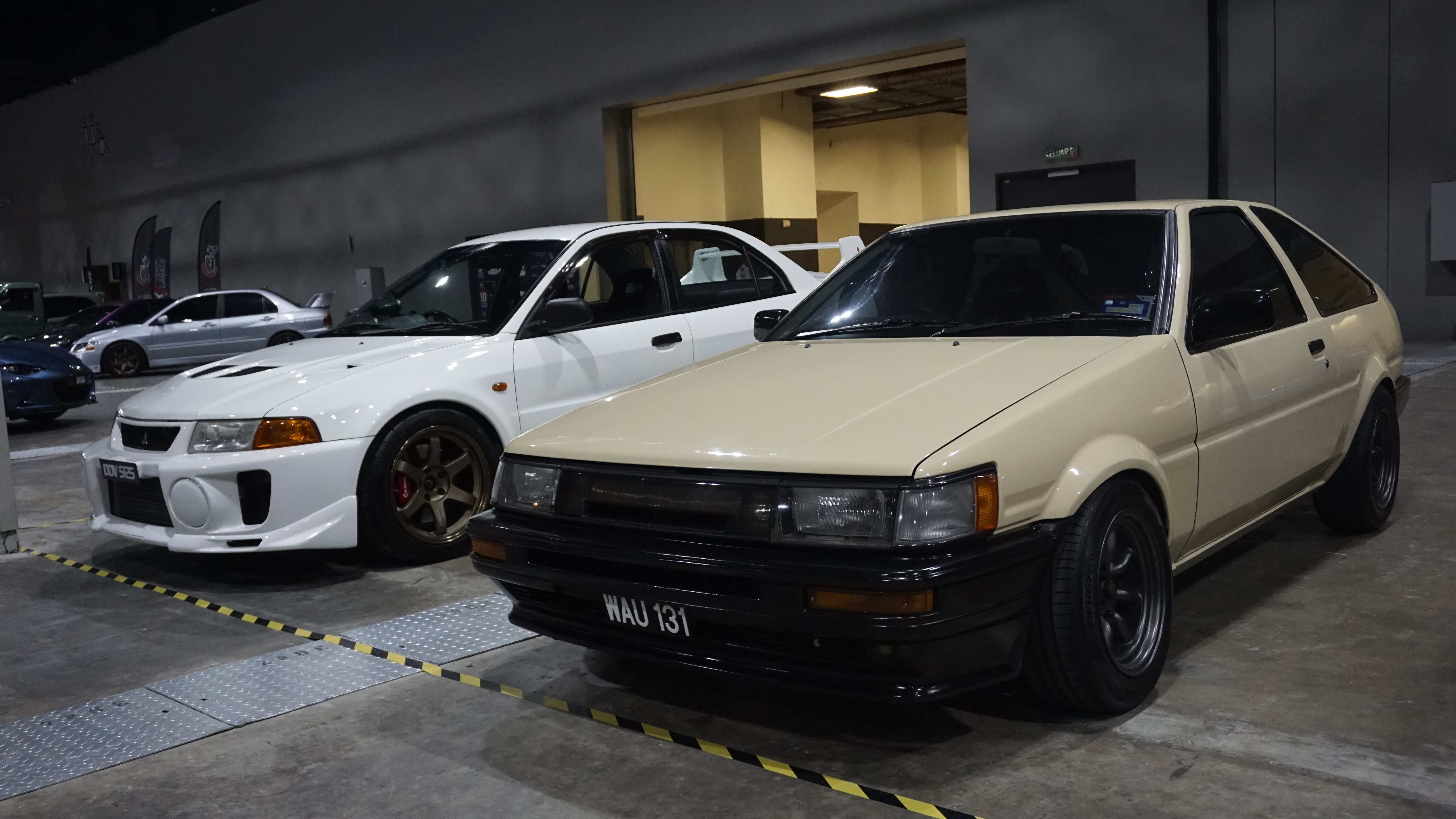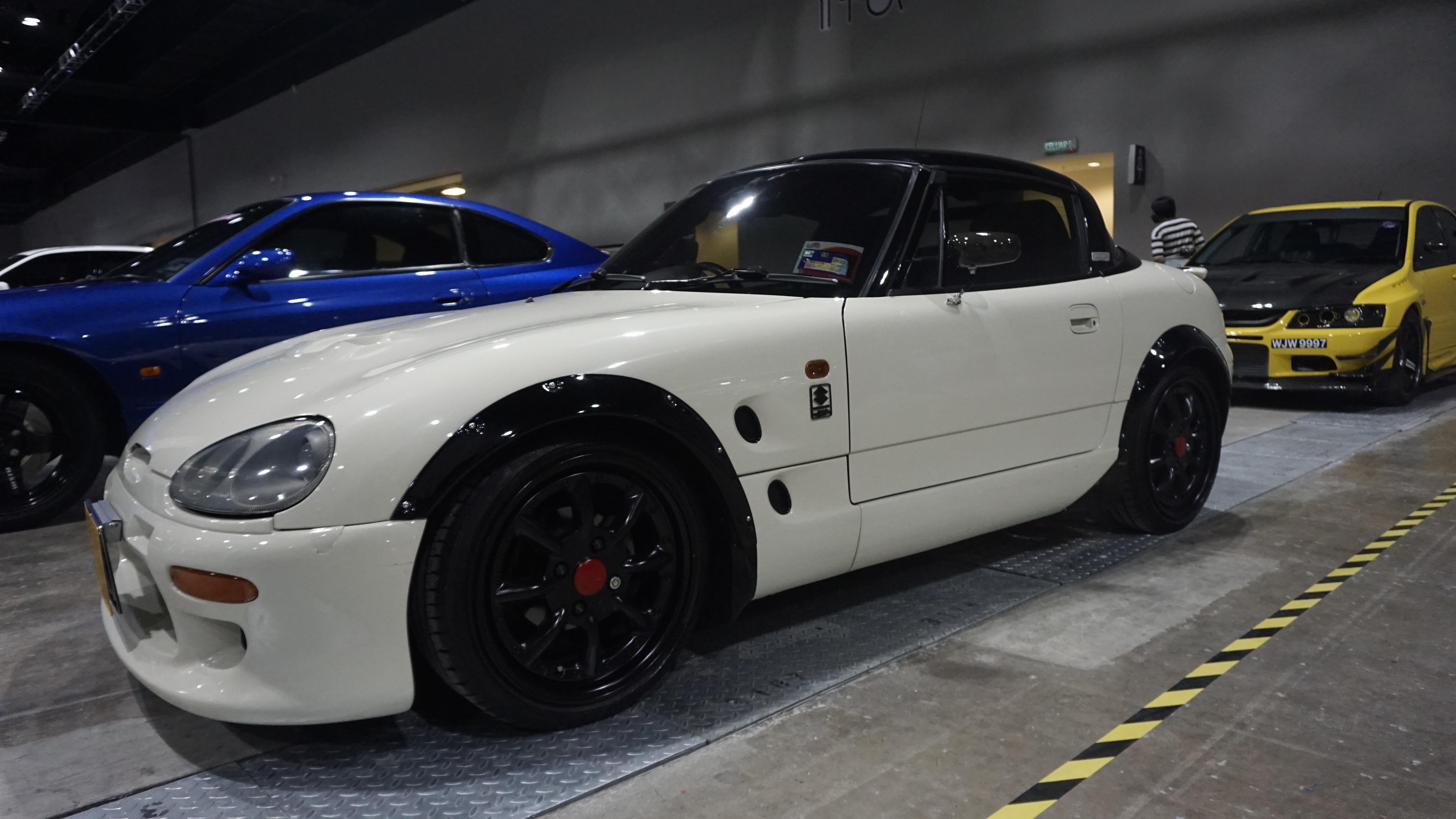 - Hasil binaan Kazushige Sakamoto dari Garage Active yang menerima material gentian karbon secara menyeluruh pada badan kereta.
