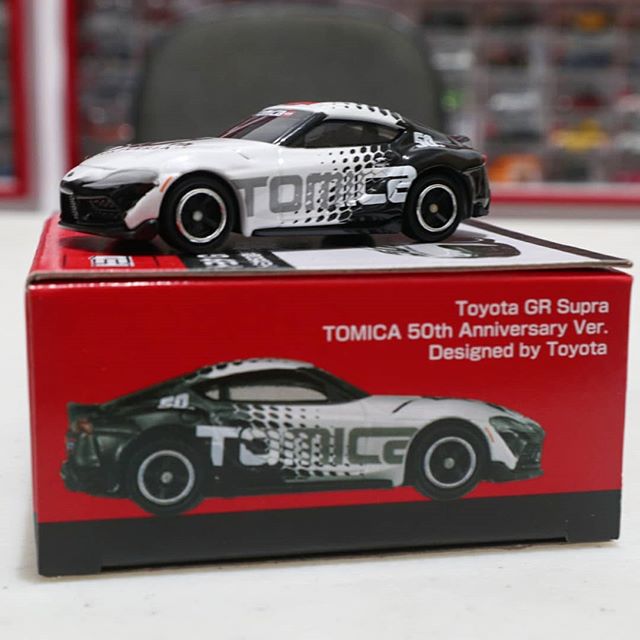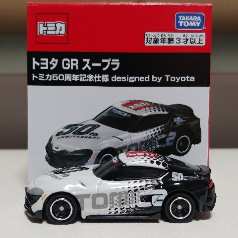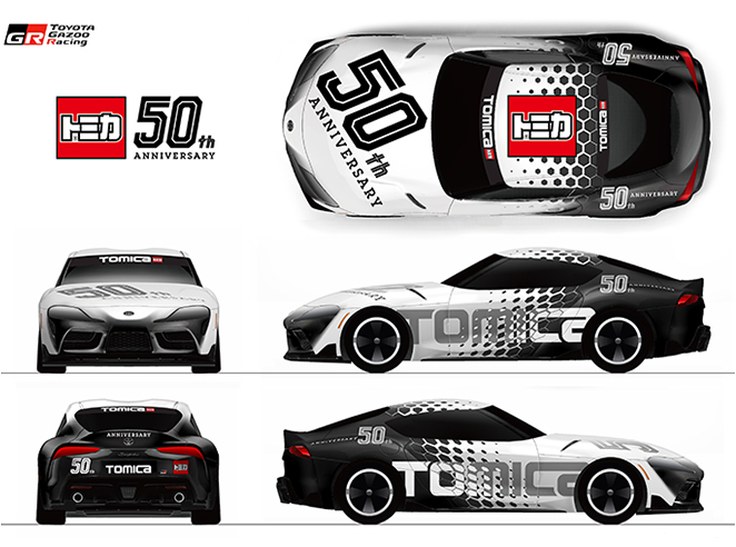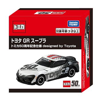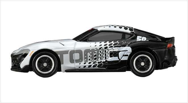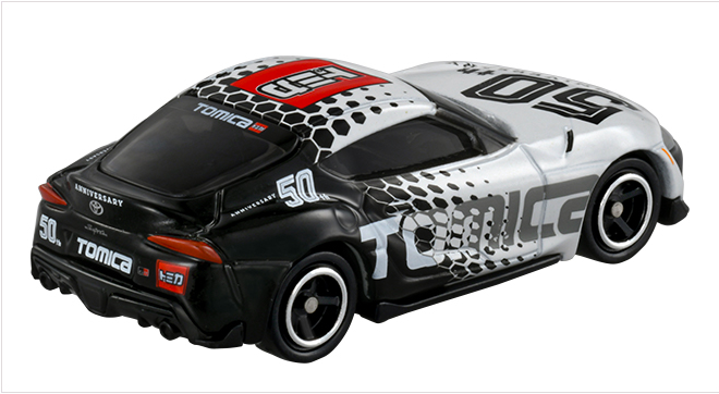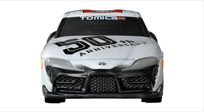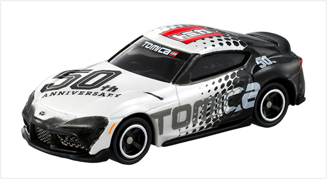 Toyota Supra TOMICA 50th Anniversary Edition pula direka Toyota Tsusho Corporation, iaitu pasukan pereka GAZOO Racing Company GR, Mizuhata Yasuhiko untuk menggambarkan sebuah jentera lumba Supra.