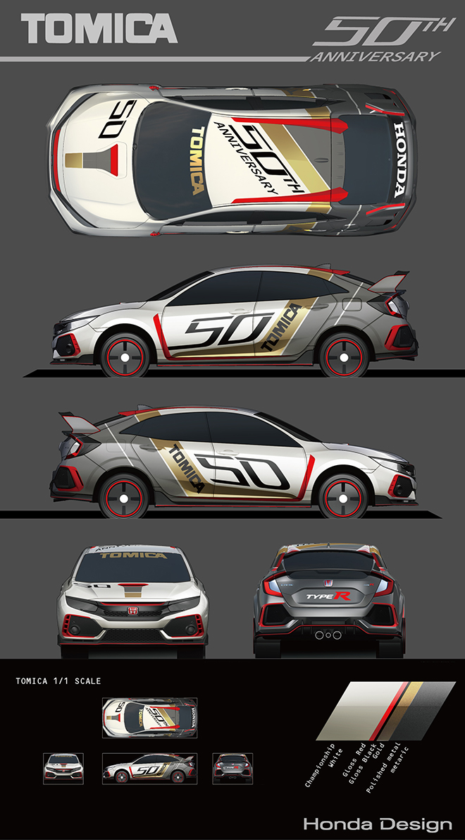 Versi baharu itu membezakan Civic Type R TOMICA 50th Anniversary Edition dengan model lain. Tidak ketinggalan, juga terdapat aksen merah pada rim, bampar, spoiler, bonet dan bumbung.