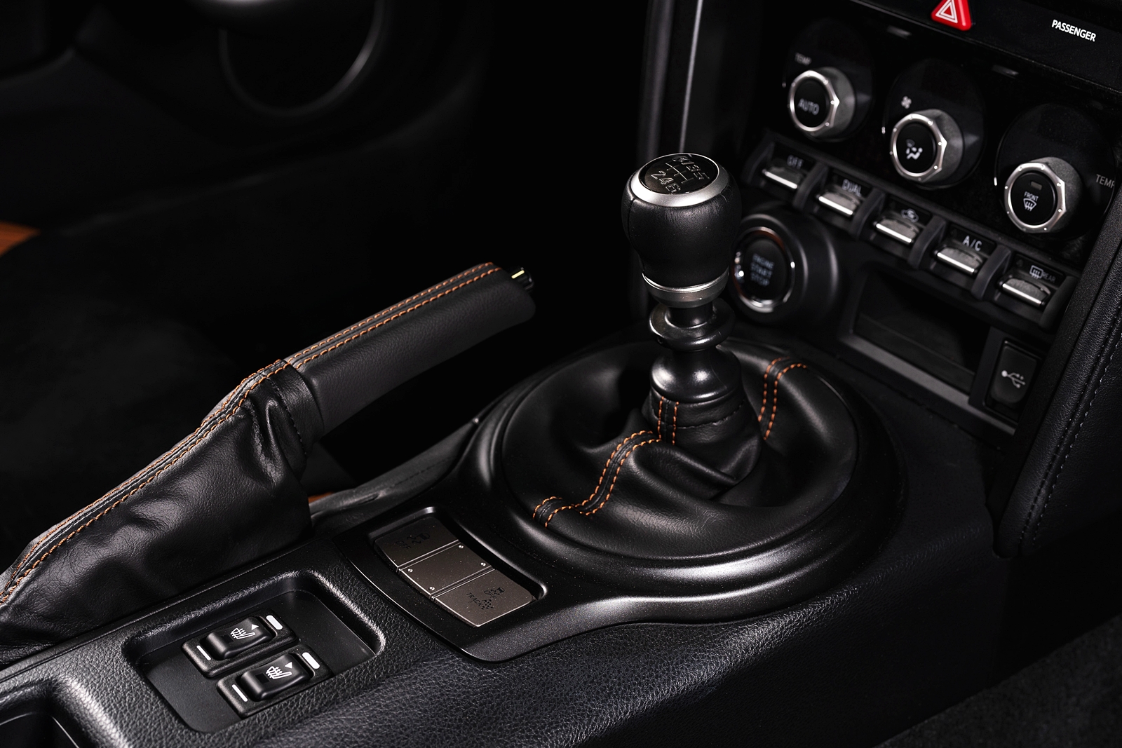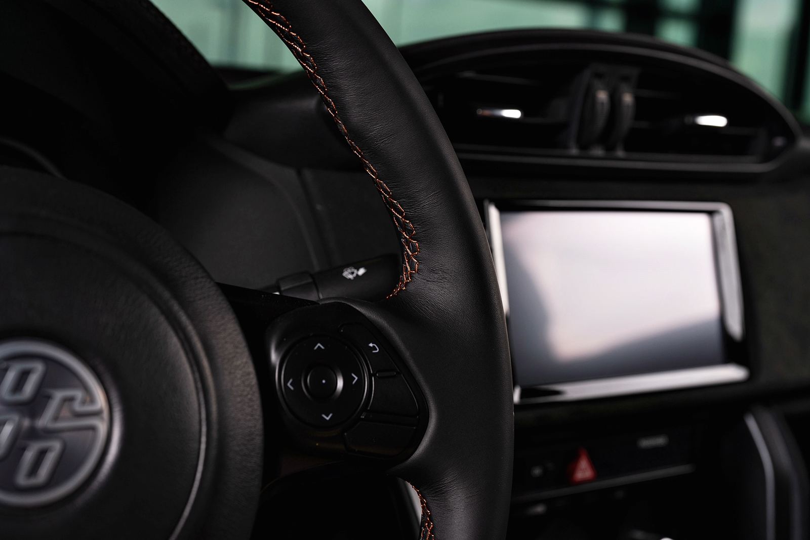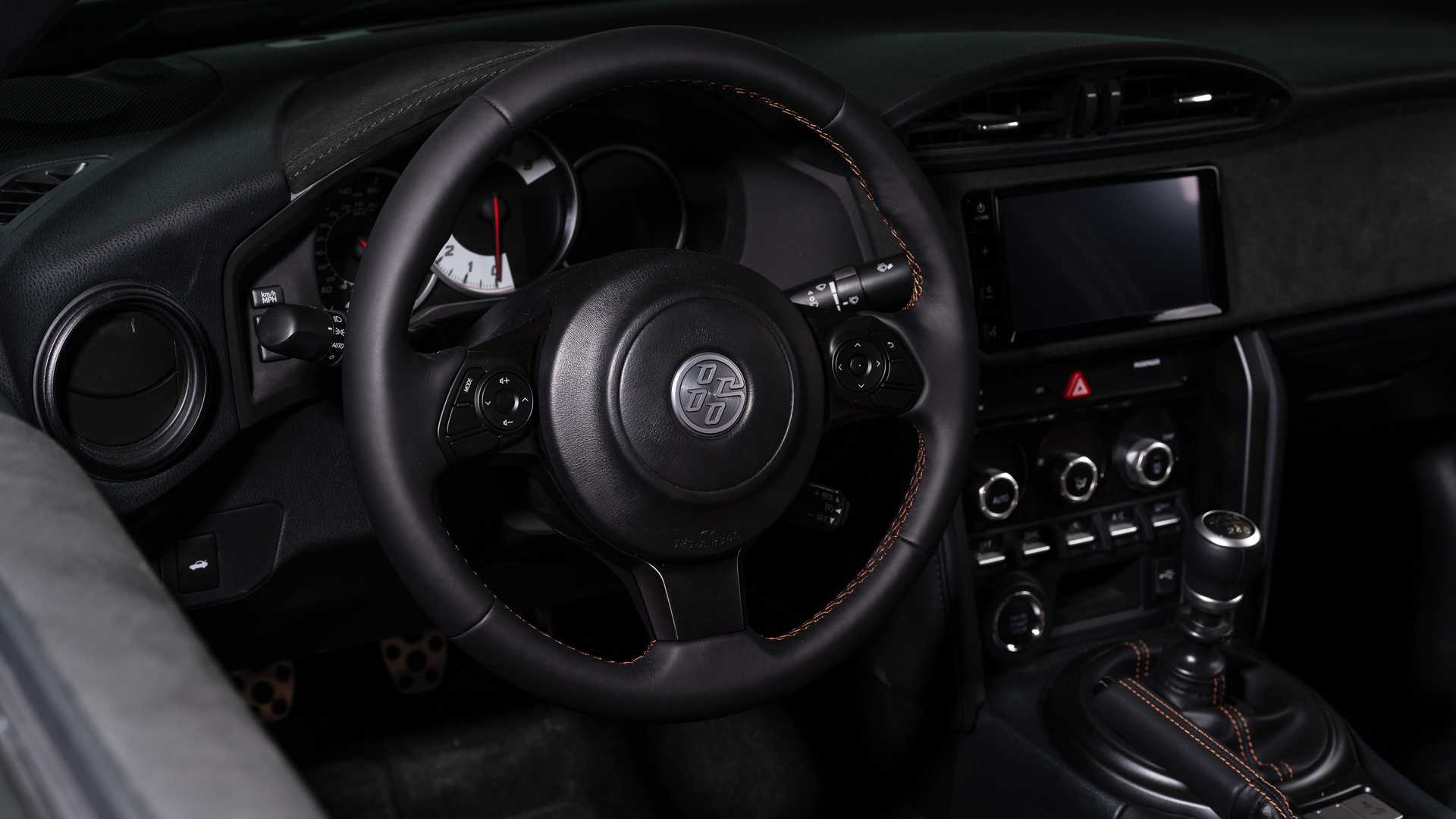 Ruang dalaman kereta dilengkapi kerusi sport balutan Alcantara hitam dan perehat lengan warna perang dan sulaman hitam. Kelihatan logo Toyota 86 disulam di sebelah kanan papan pemuka, manakala stereng, penutup brek tangan dan penukar gear dikontraskan dengan sulaman perang.