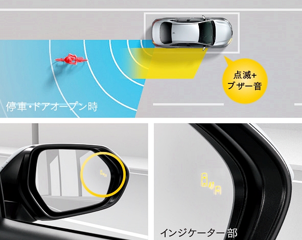 Turut dilengkapi Monitor Titik Buta dengan fungsi amaran apabila kereta berhenti dan terdapat kenderaan yang menghampiri dari belakang termasuk basikal.