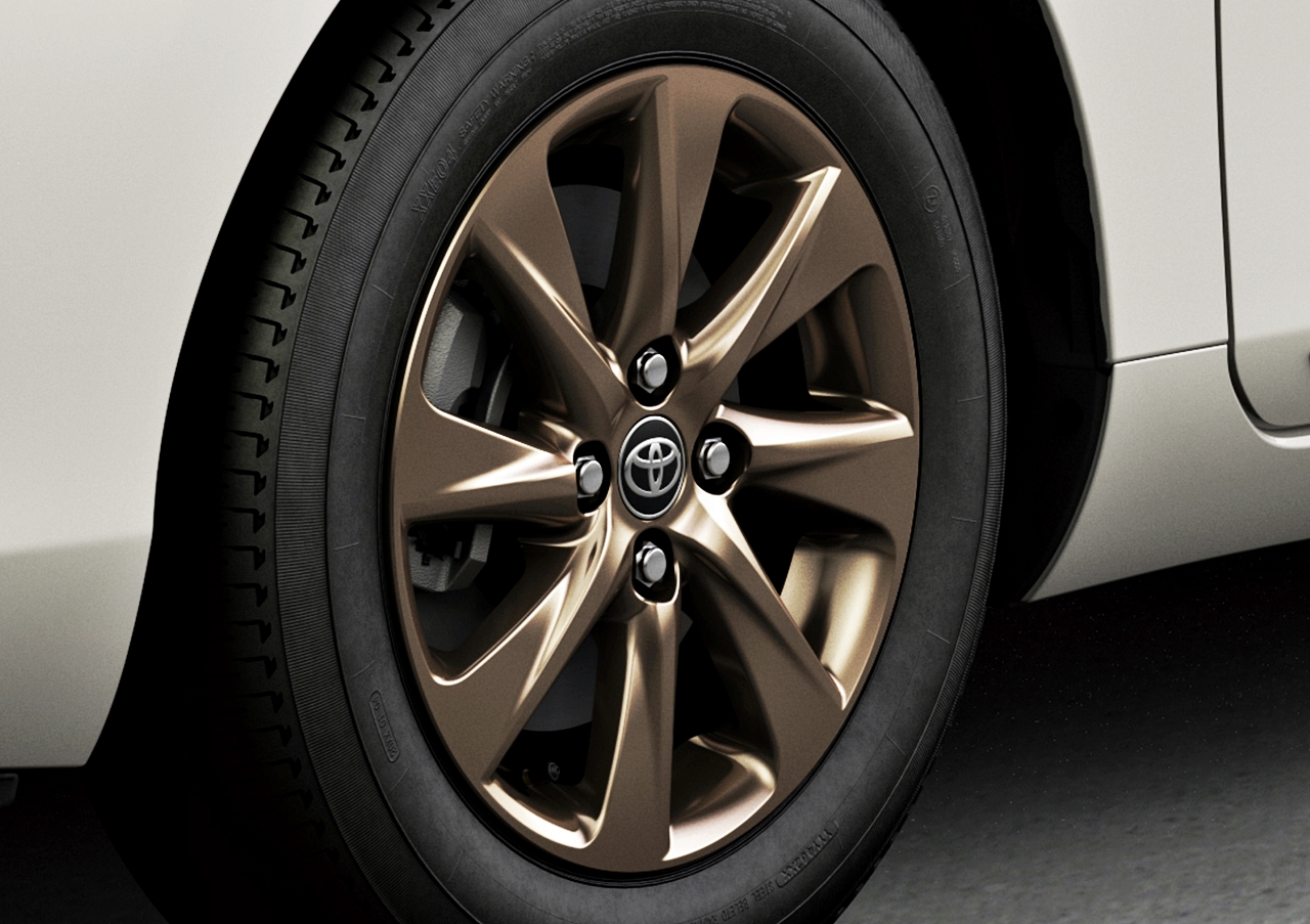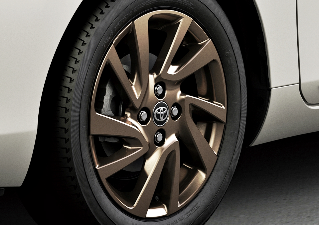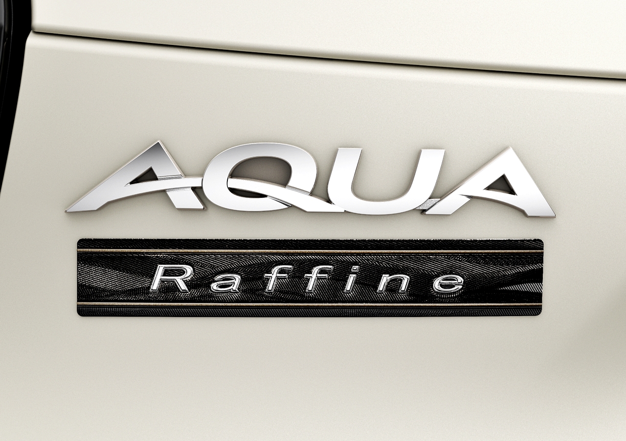 Toyota Aqua Z Raffine pula tampil bergaya dengan kemasan tembaga dan aksesori yang boleh dipesan pelanggan seperti pendakap pintu dan pelekat khas.