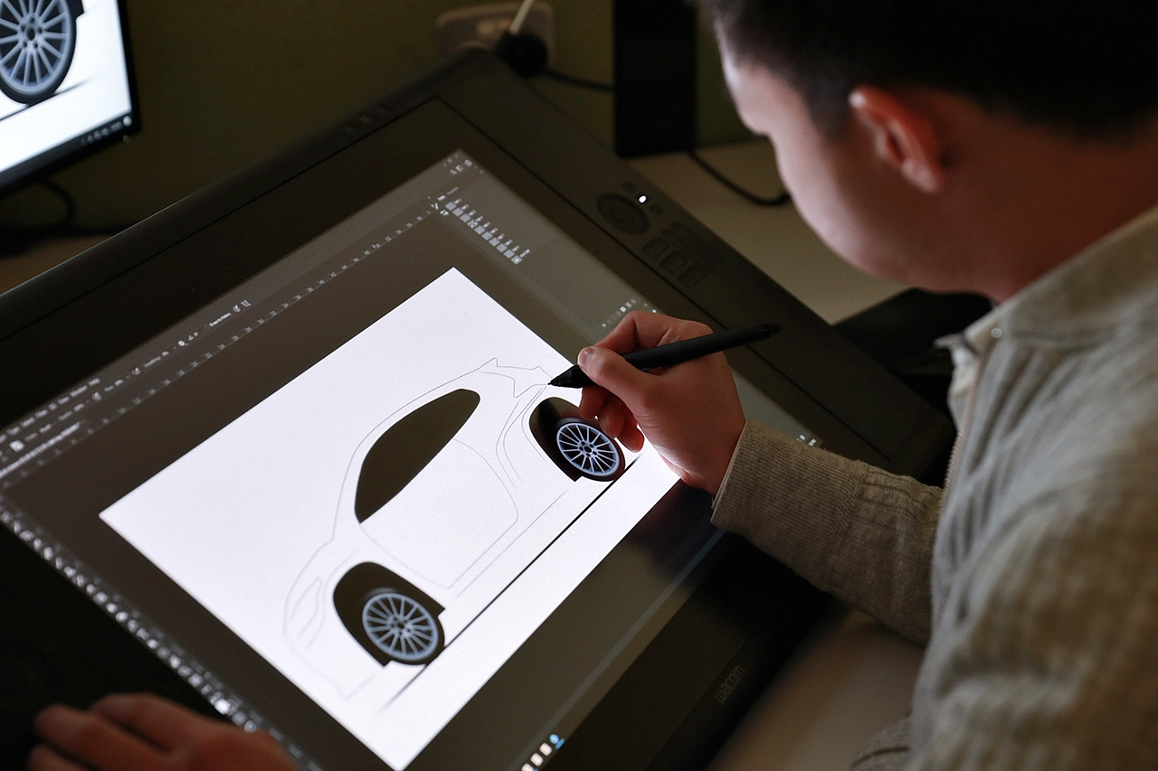 Kemudian, lakaran awal dibuat untuk beberapa komponen seperti fender depan, pod bampar depan dan belakang, panel suku belakang, ventilator bonet dan cermin yang diperhalusi menggunakan rekabentuk digital. Selepas diluluskan, data diperoleh digunakan untuk membuat fail akhir perisian rekabentuk CAD sebelum menjalani operasi mesin canai CNC untuk membuat acuan bagi menghasilkan komponen gentian kaca.