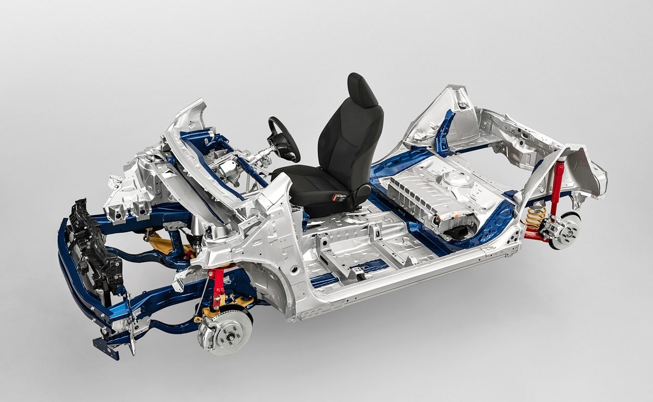 Ciri kedua, suspensi MacPherson depan menggunakan damper dengan geseran rendah dan pelbagai jenis spring. Suspensi belakang pula boleh menggunakan torsion beam atau multi-link, bergantung kepada karakter dan jenis kenderaan.