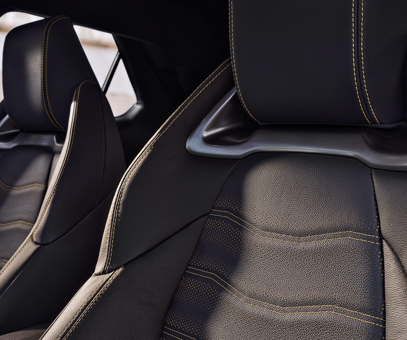- Kerusi depan sport dengan balutan seakan sued.