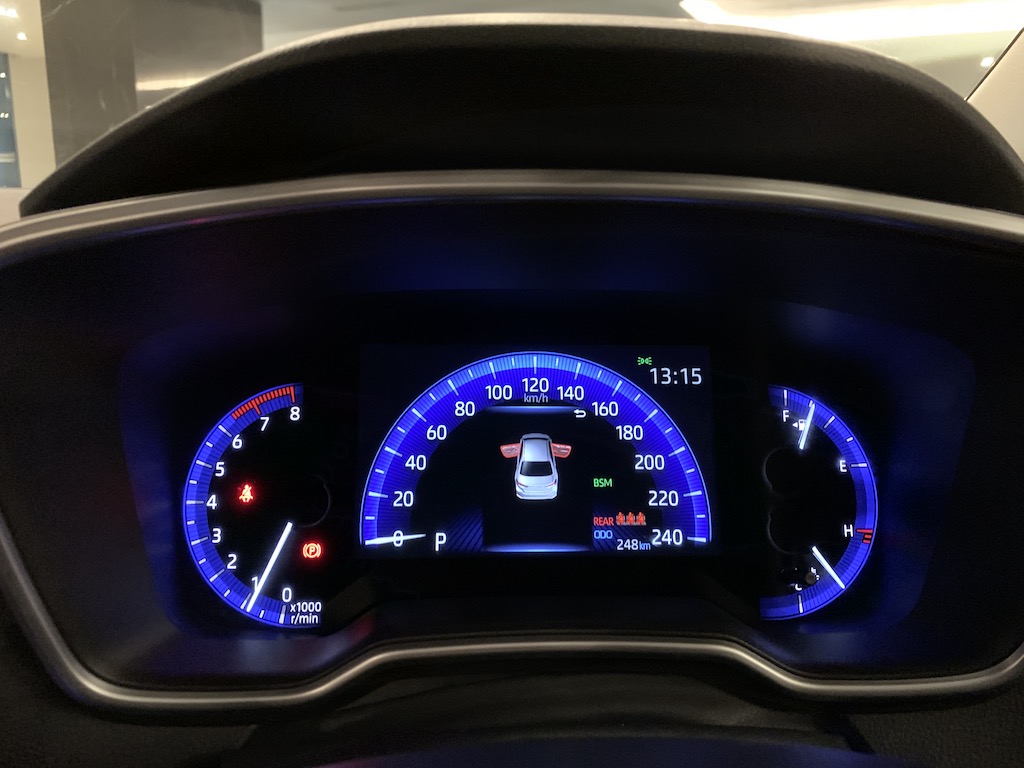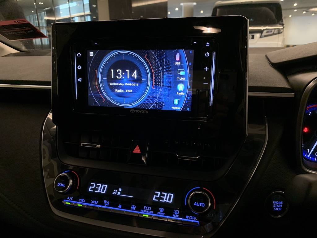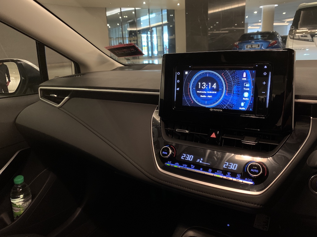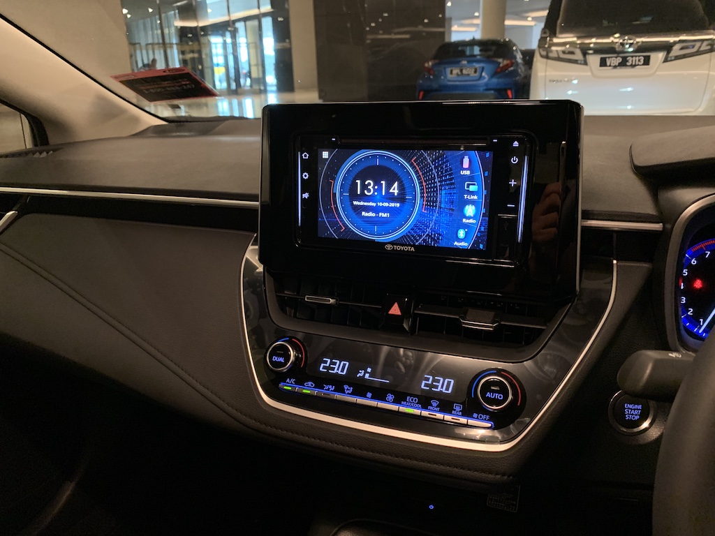 Corolla Altis 1.8E datang dengan pakej meter MID standard 4.2-inci bersama panel TFT dan paparan berwarna. Kedua-dua varian ada ciri penghidup pintar tanpa kunci aka keyless untuk pemandu dan penumpang depan.