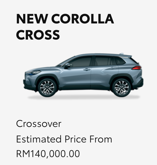 UMW Toyota Motor (UMWT) sebenarnya sudah membuka tempahan untuk kenderaan utiliti sukan (SUV) Corolla Cross versi dipertingkat itu dengan anggaran harga bermula RM140,000.