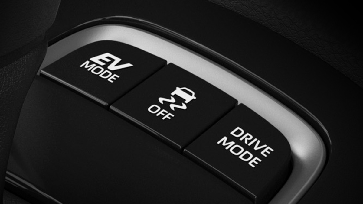 - Ada butang mod elektrik EV Mode dan mod pandu Drive Mode.