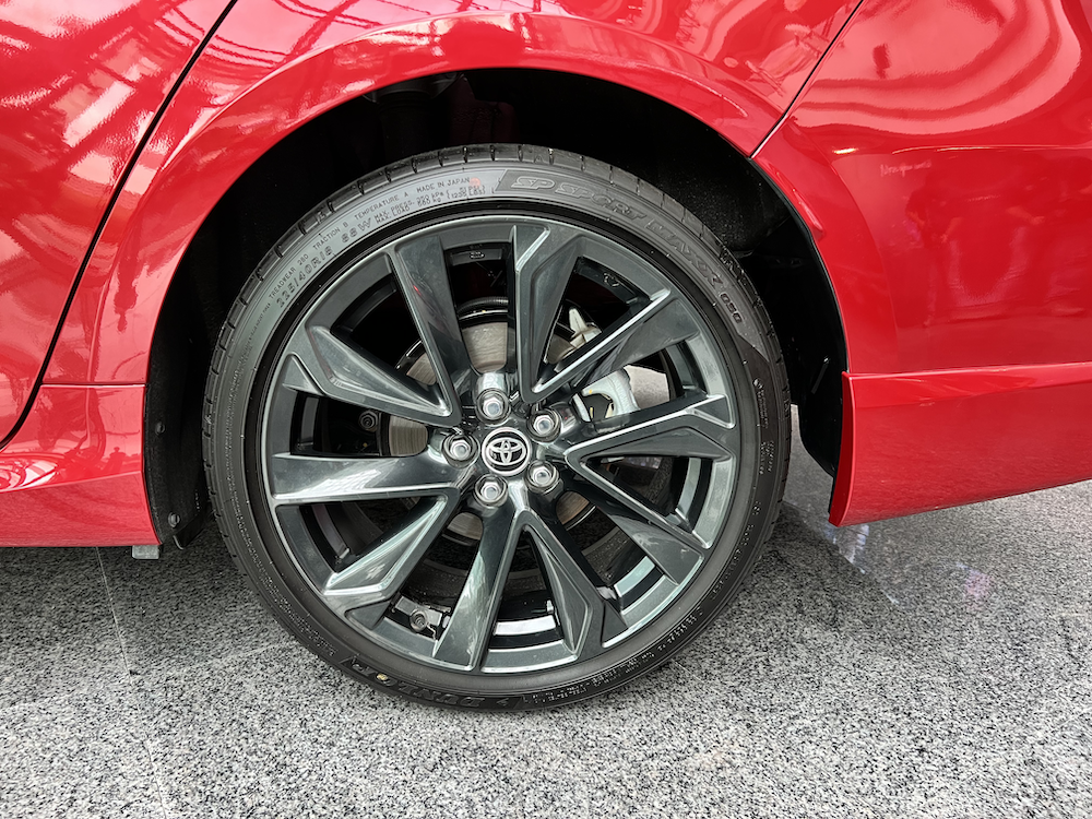 - Rim aloi 18 inci rekaan baharu, warna Machine/Dark Gray Metallic (kelabu gelap), dan dibalut profil tayar 225/40R.