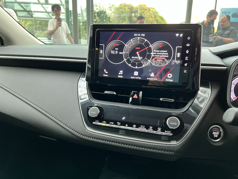 - Unit infotainmen skrin sentuh 9 inci dengan konektiviti Apple Carplay dan Android Auto menggunakan kabel.