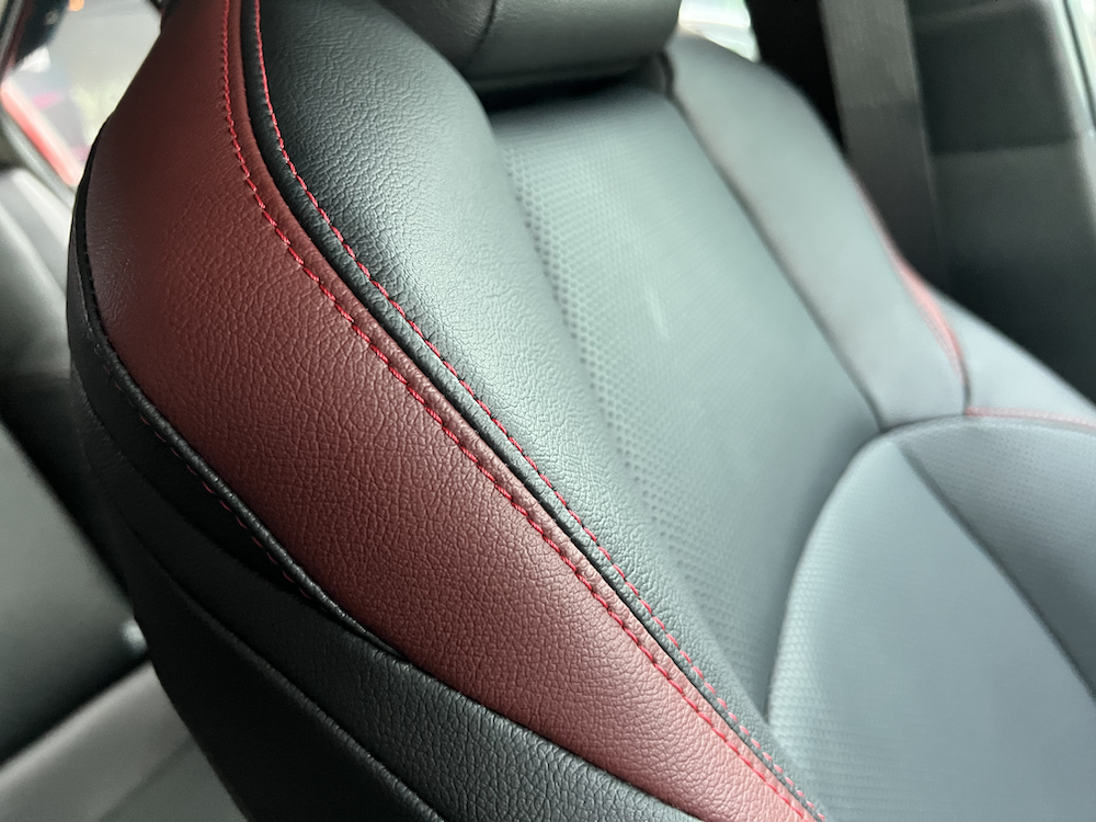 - Sulaman benang merah pada kerusi, trim pintu dan beberapa bahagian lain.