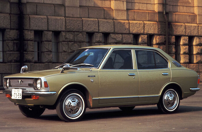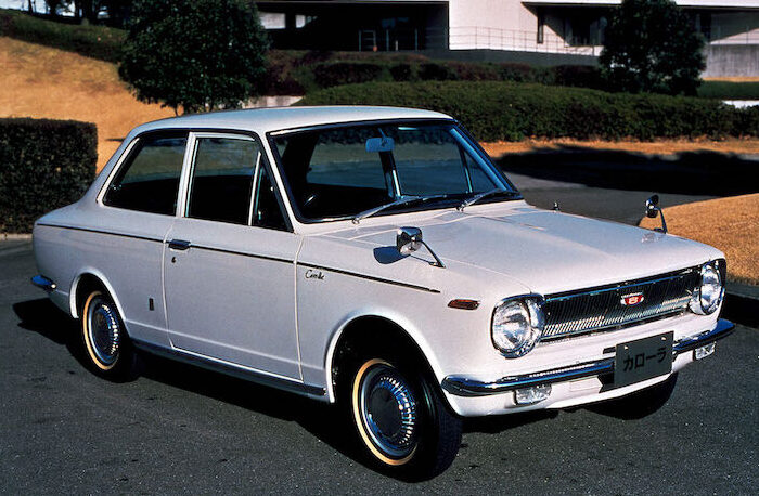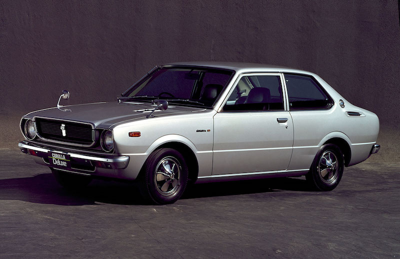 Generasi pertama Corolla diperkenalkan sebagai kereta rakyat di Jepun pada 5 November 1966, kira-kira 55 tahun lalu. Individu disebalik pembinaan Corolla ialah Tatsuo Hasegawa yang juga pereka pesawat zaman Perang Dunia Kedua (WWII).