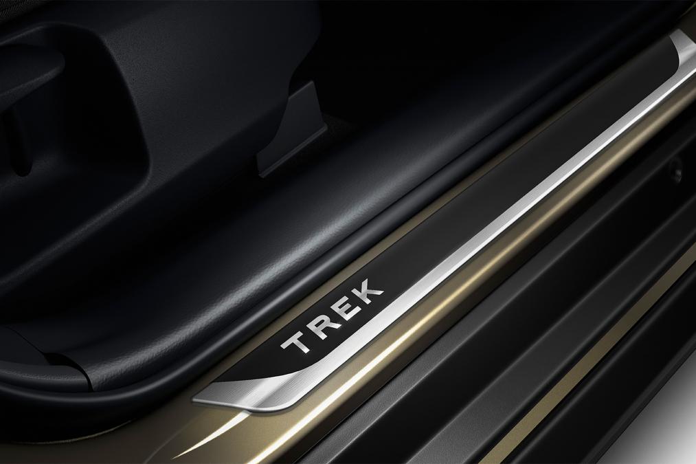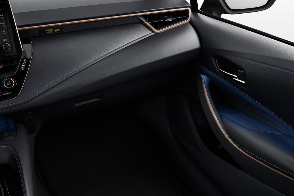 Ruang dalaman Corolla TREK mendapat kemasan upholsteri fabrik dua-tona, papan pemuka direka semula dengan kemasan kayu dekoratif dan lencana TREK untuk sil pintu dan lid but. Pembeli juga mendapat kluster instrumen digital 7 inci, sistem infotainment 8 inci, kawalan jelajah adaptif, sistem pengesan sikal dan pintu but automatik.