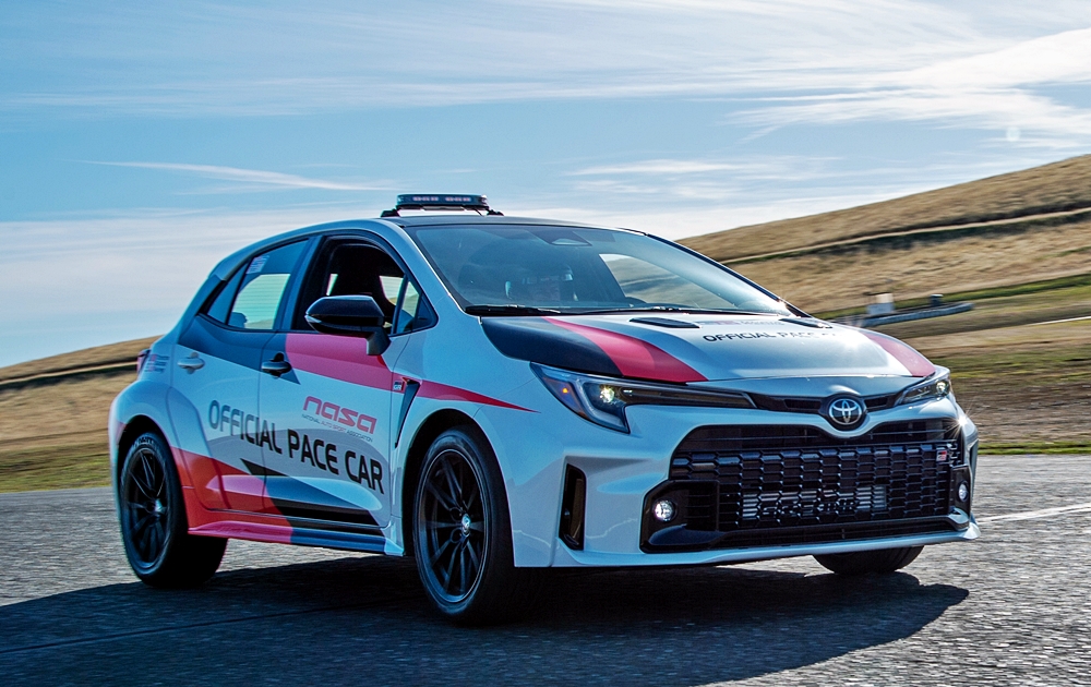 Penawaran GR Corolla dimanfaatkan Toyota Amerika Syarikat (AS) sebagai kereta teraju (pace car) rasmi Kejuaraan Kebangsaan NASA (National Auto Sport Association) 2022 dan tampil di litar Laguna Seca, tahun lalu.