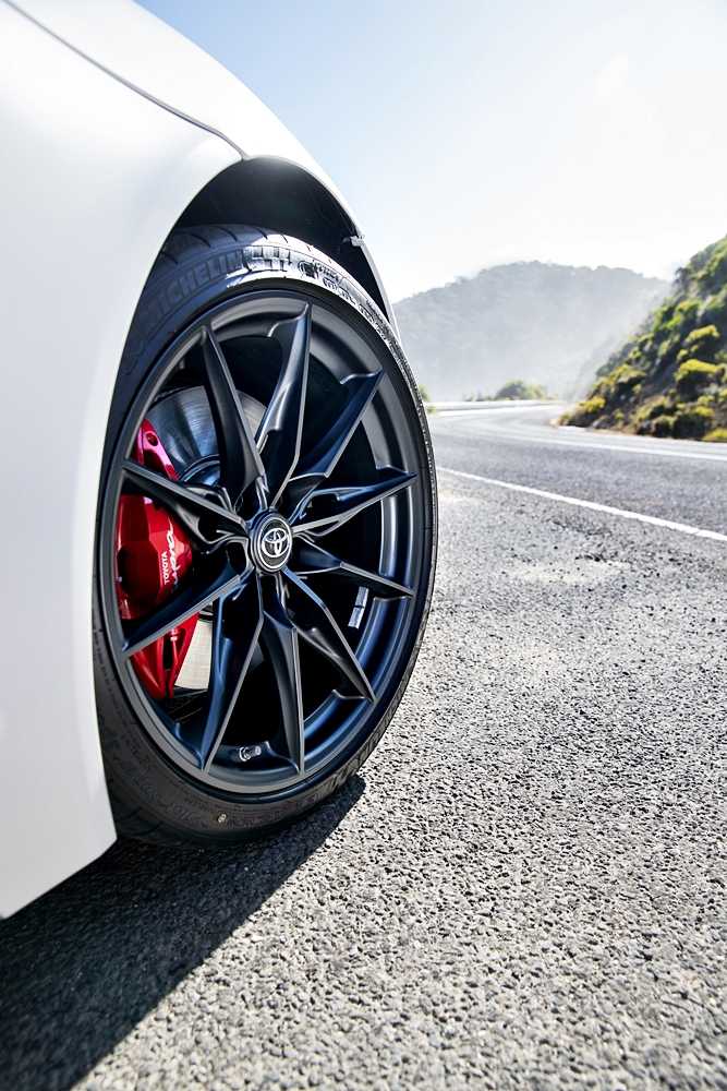 - Digabung perubahan karakteristik sesendal (bush) suspensi, pakej itu meningkatkan lagi fiil stereng Toyota GR Supra. Satu lagi perubahan dibuat adalah semua varian menggunakan kaliper brek merah.