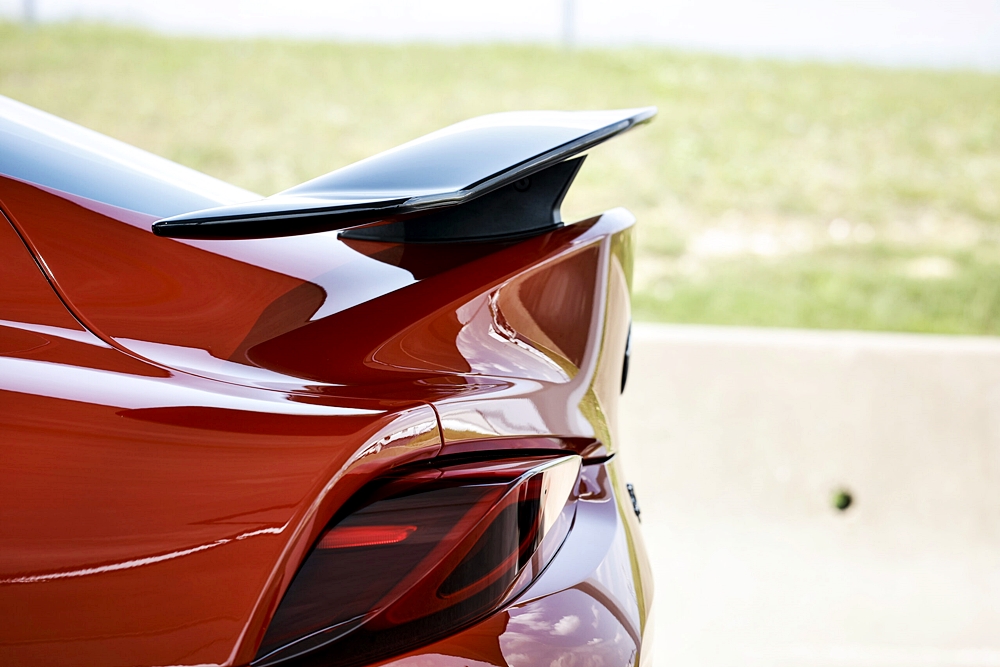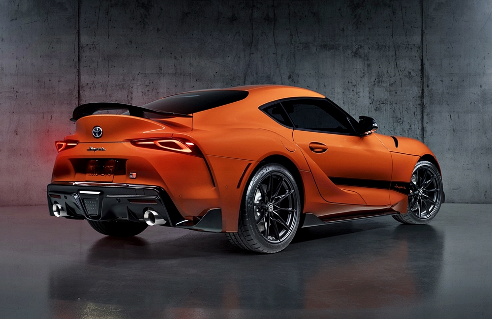 Toyota GR Supra 45th Anniversary Edition (2024) dibina berasaskan Toyota GR Supra 3.0 Premium Grade yang dipasang spoiler belakang boleh laras manual, 3 inci atas dek belakang. Pemilik diberikan skru pada spoiler untuk melaras sudut sayap dan tahap daya mendap (downforce).