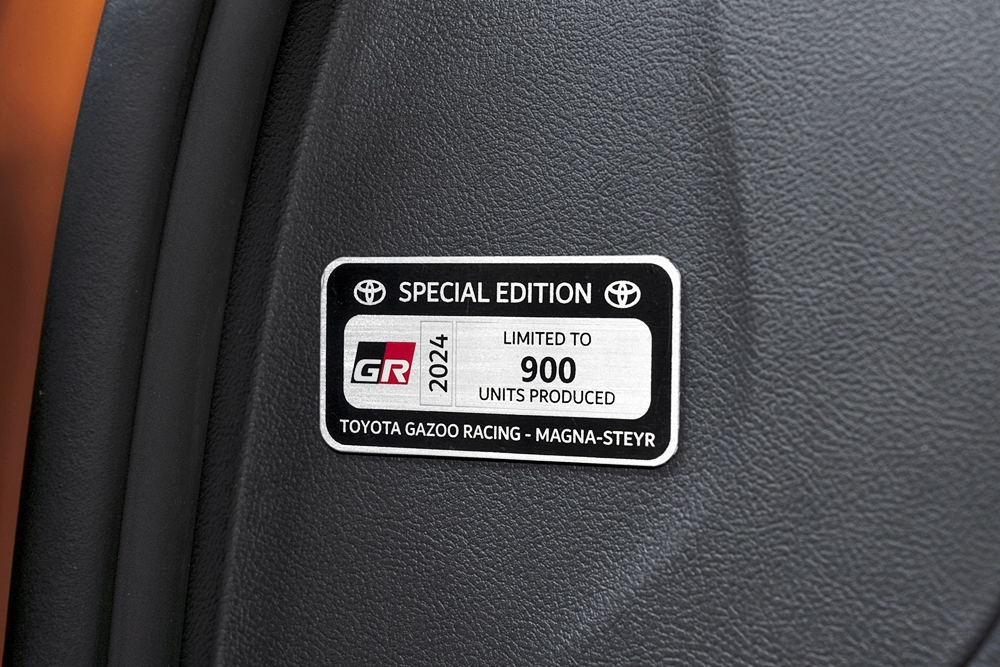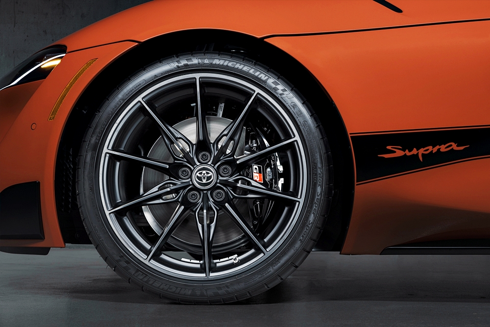 Rim aluminium 19 inci diwarnakan hitam kusam dan kaliper brek juga hitam dengan logo GR. Grafik sisi kereta menonjolkan kontur badan dan tertera logo Supra. Model istimewa tersebut juga mengingatkan kepada Toyota Supra MkIV yang banyak digunakan dalam filem lumba jalanan dan aksi.