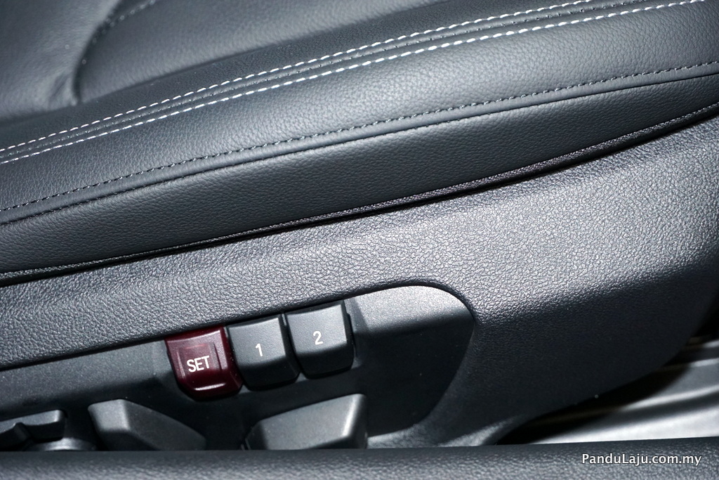 Gaya moden dapat dilihat pada unit infotainment di tengah papan pemuka, kawalan penyaman udara dwi-zon yang disusun kemas secara horizontal, kawalan audio berbentuk tombol rotasi di konsol gear, sistem kunci pintar dan butang penghidup enjin, kerusi sport kulit boleh laras elektrik dengan sokongan lumbar, paparan dongak (HUD), cermin pandang belakang elektrokromatik dan sistem bunyi dengan 12 pembesar suara JBL.
