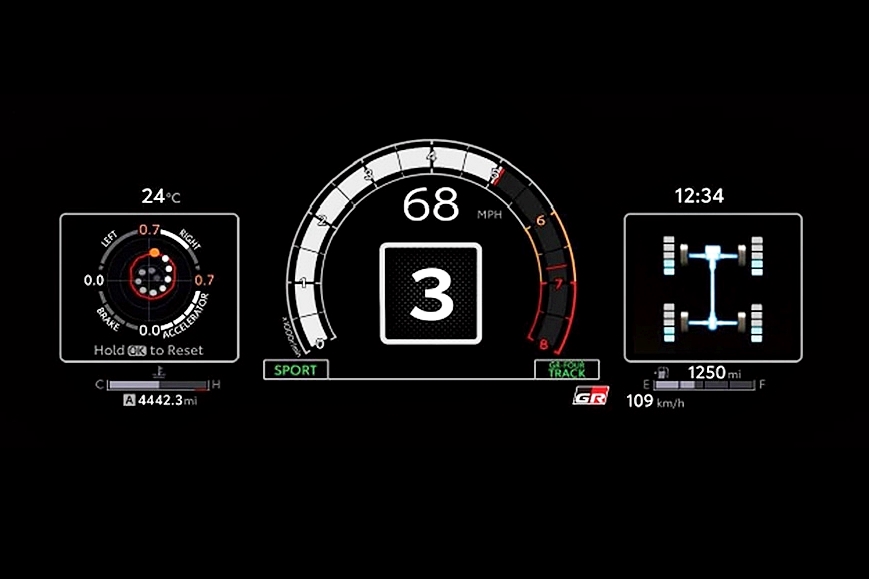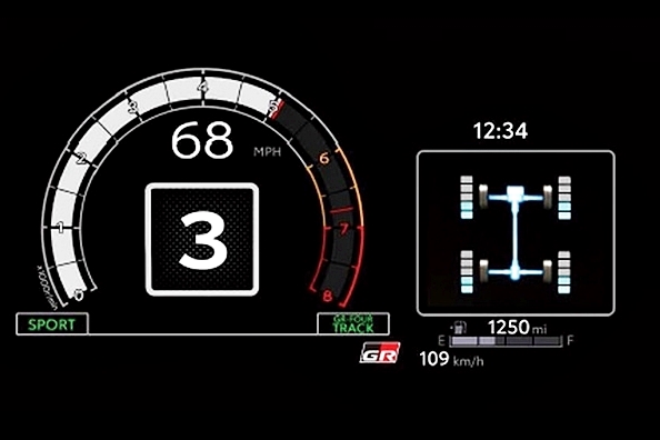 - Skrin TFT warna penuh saiz 12.3 inci dipengaruhi pelumba profesional. Model automatik dilengkapi paparan suhu transmisi dan amaran sekiranya gear tidak boleh diturunkan disebabkan rev terlalu tinggi. Perubahan dibuat mengikut permintaan pemandu kereta prototaip dalam Kejohanan Rali Jepun termasuk amaran yang mudah difahami walaupun ketika helmet dipakai.