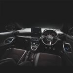- Ruang kabinm menampilkan set kerusi ringan yang dibalut kulit hitam dan sulaman benang merah, termasuk kemasan stereng tiga jejari.