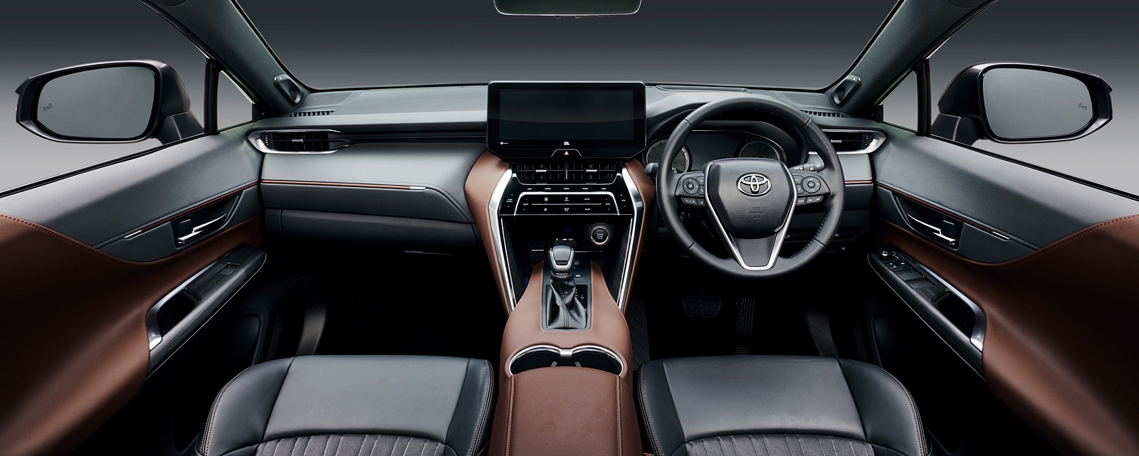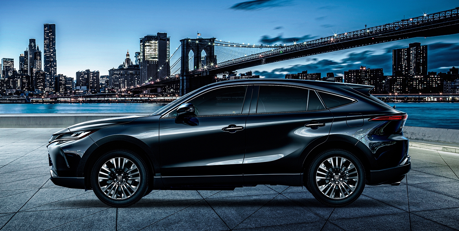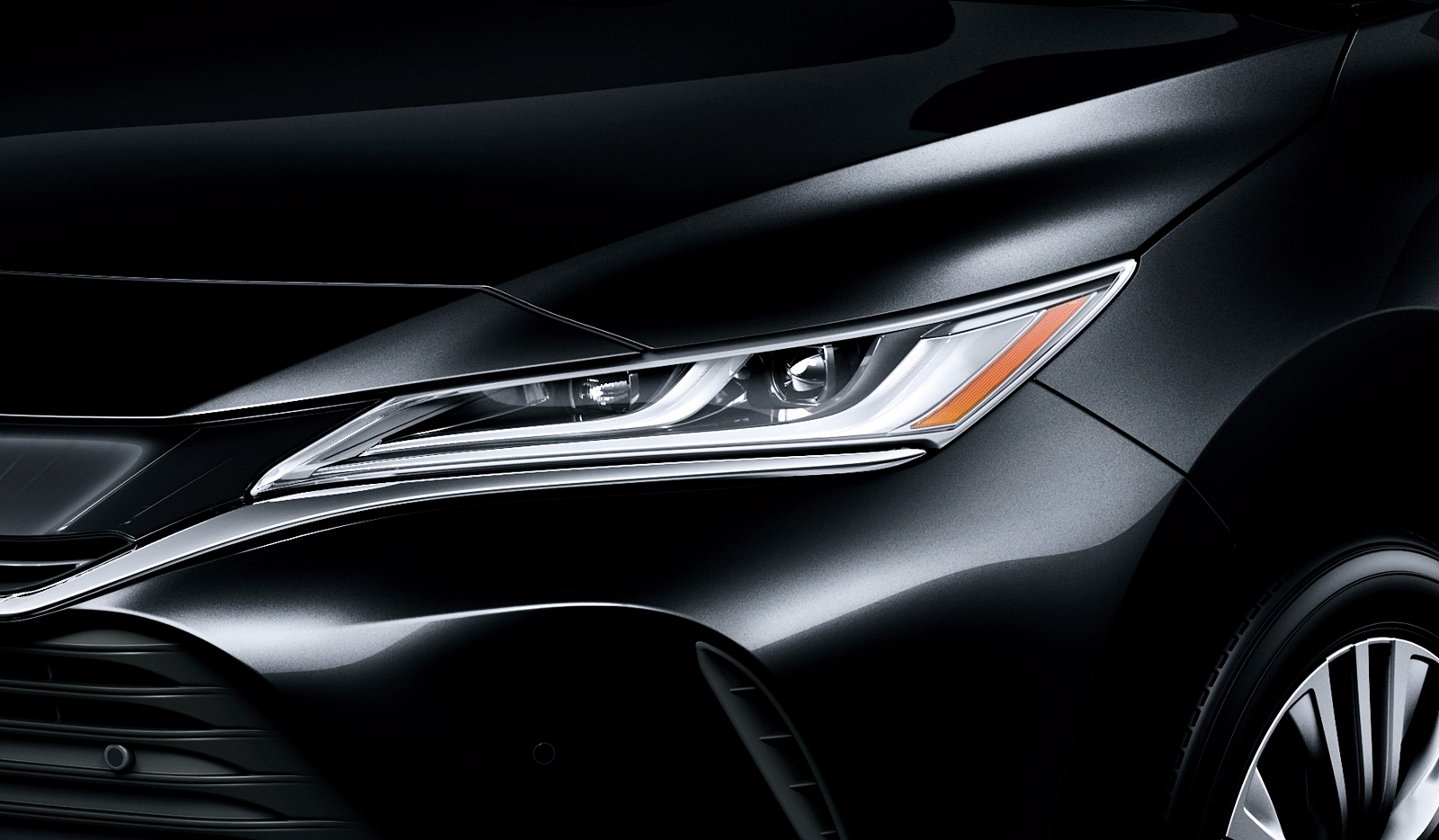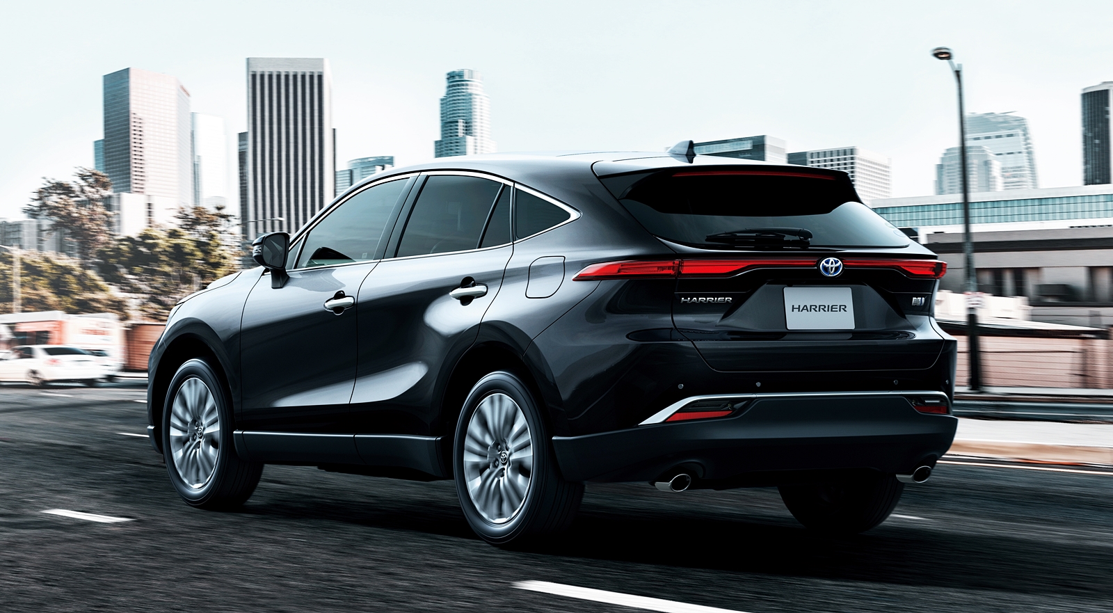 Bahagian depan Harrier (2020) nampak bersahaja berbanding dua model ikonik Vellfire/Alphard dan Camry yang lebih menonjol pada bukaan gril dan bentuk bampar. Lampu depan tirus, dan lampu belakang sebaris nampak ringkas sahaja.