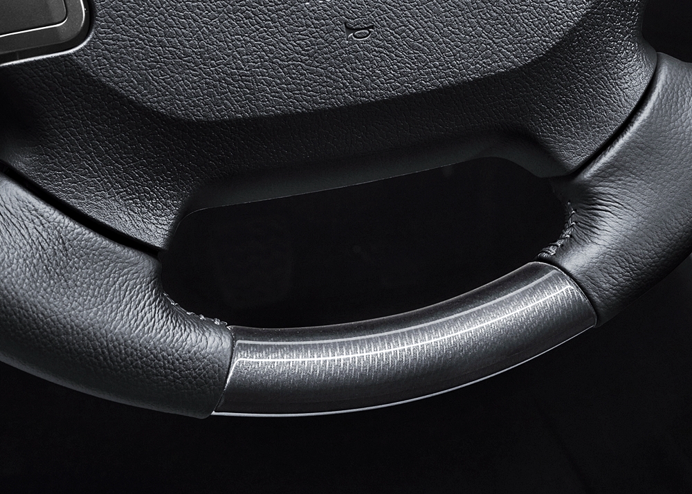 - Trim karbon pada panel corong penyaman udara dan unit infotainment, bucu bawah stereng dengan balutan kulit, tombol gear, panel suis pada pintu.