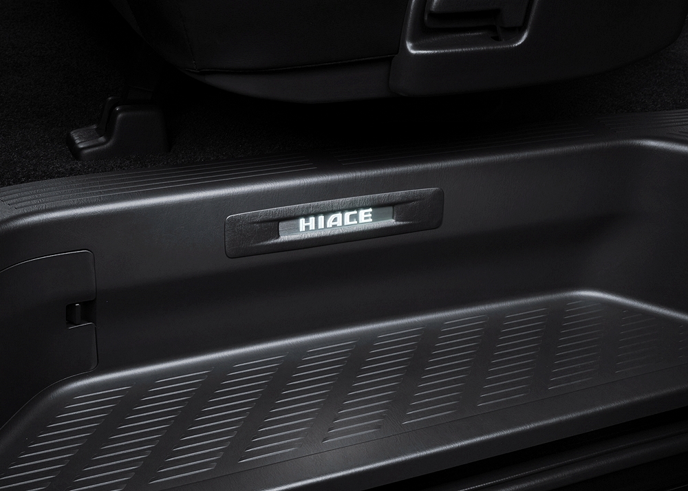 - Logo Hiace menyala pada panel pemijak kaki pintu gelangsar.