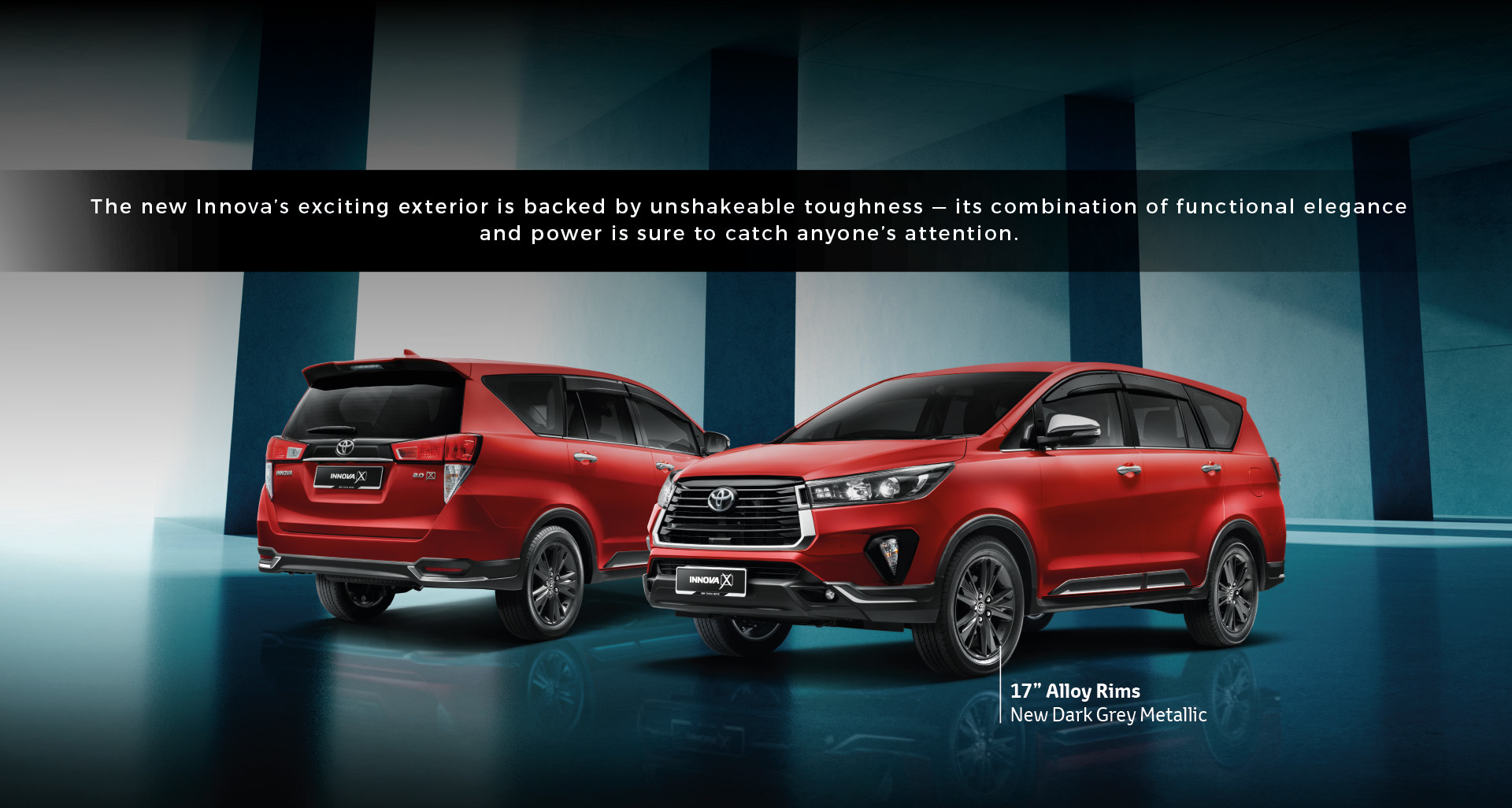 - Rim aloi 17 inci kini dalam warna Dark Mica Metallic berbanding hitam biasa, rim Innova 2.0G (barian pertengahan) pula direka baharu lebih dinamik.