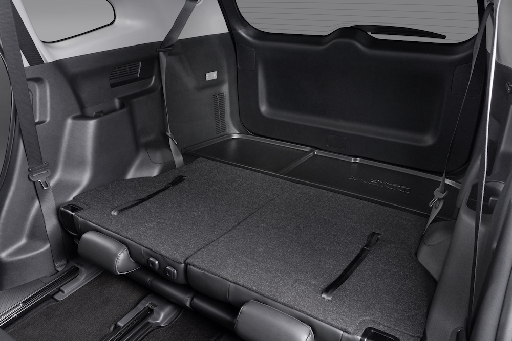 - Tempat duduk baris kedua untuk kapasiti tiga penumpang boleh lipat 60:40 (bawah atau ke sisi), manakala tempat duduk baris ketiga boleh direbahkan 50:50.