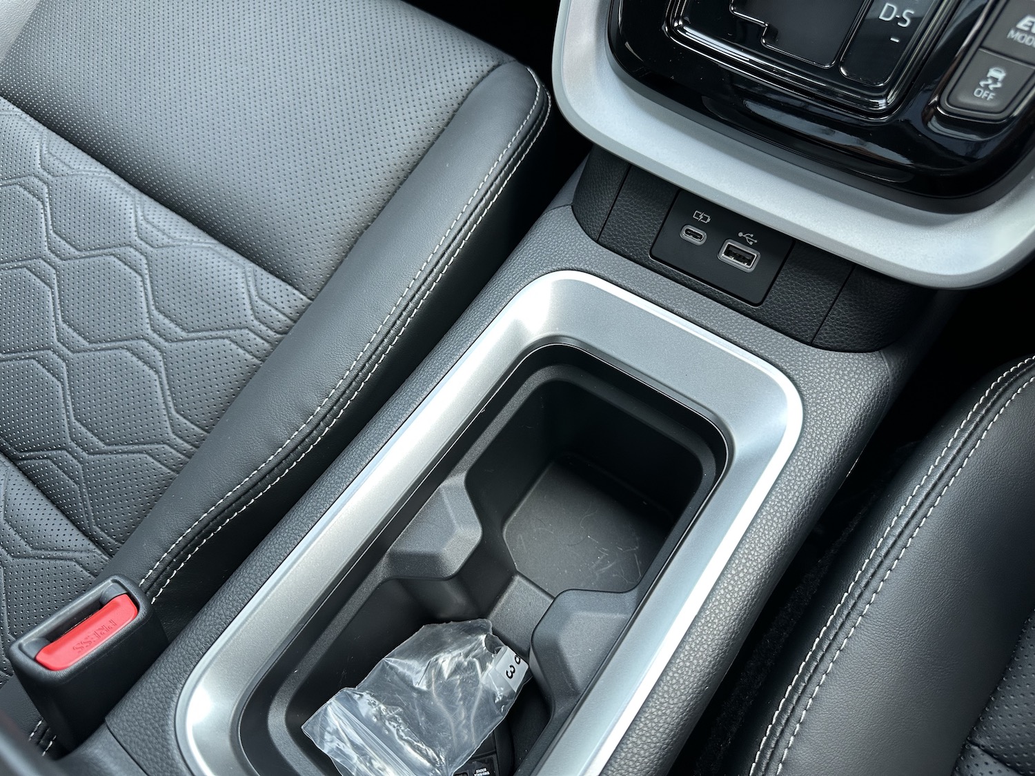 - Port USB dan dua soket kuasa 12V serta tempat letak cawan untuk setiap penumpang.