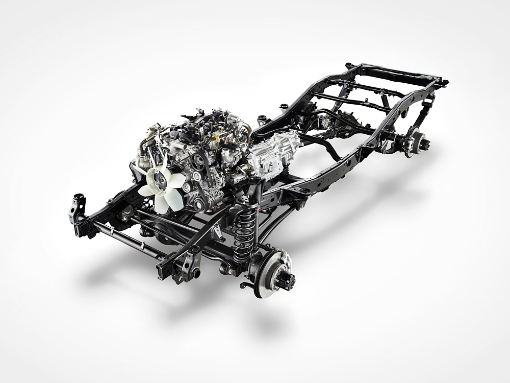 - Selain casis bentuk tangga (ladder frame) yang lasak dan kunci diferensial elektronik (EDL), model ini juga dilengkapi pelbagai fungsi kawalan dan pembrekan, seperti Kawalan Stabiliti Kenderan (VSC), Kawalan Traksi Aktif (A-TRC), Kawalan Bantuan Mula Daki (HAC), dan Bantuan Kawalan Turun Cerun (DAC).