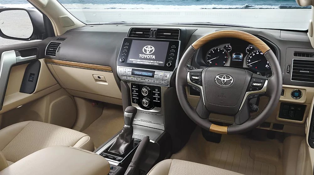 Beberapa pilihan tambahan dalam kabin yang ditawarkan termasuk sistem infotainment bersaiz 9-inci dengan ketersambungan telefon pintar. Versi TZ-G pula didatangkan dengan pedal shifter tambahan bersama transmisi 6-kelajuan automatik. Selain naik taraf peralatan, Toyota Land Cruiser Prado (2021) juga ditawarkan dengan edisi khas Black Edition.
