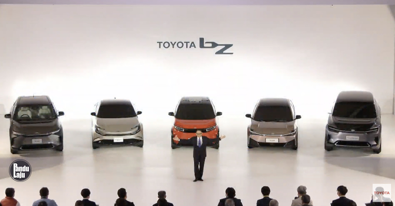 Perkara itu diumumkan Presiden Toyota, Akio Toyoda dalam taklimat virtual mengenai strategi BEV Toyota. Pembentangan bermula dengan memaparkan lima model EV penuh Toyota bZ, terdiri daripada varian kenderaan utiliti sukan (SUV) 4X yang dibangunkan bersama Subaru, SUV kompak, crossover kecil, sedan dan SUV saiz penuh.