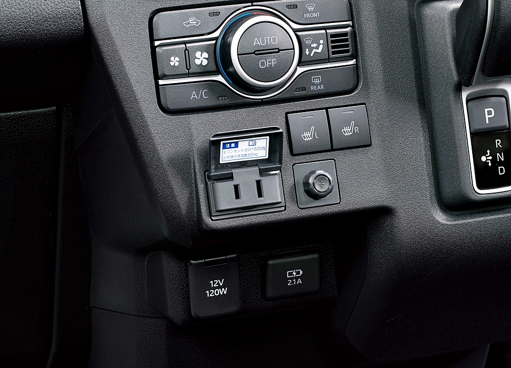 Sebagai BEV, Toyota Pixis Van BEV dilengkapi fungsi bekalan kuasa luaran maksimum 1,500W menerusi soket aksesori bawah panel instrumen.