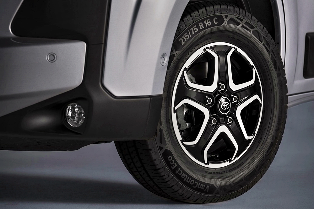 Memuatkan barang juga mudah melalui pintu ketinggian penuh dan berpetak. Pertama untuk van Toyota, pintu boleh dibuka sehingga 270 darjah.