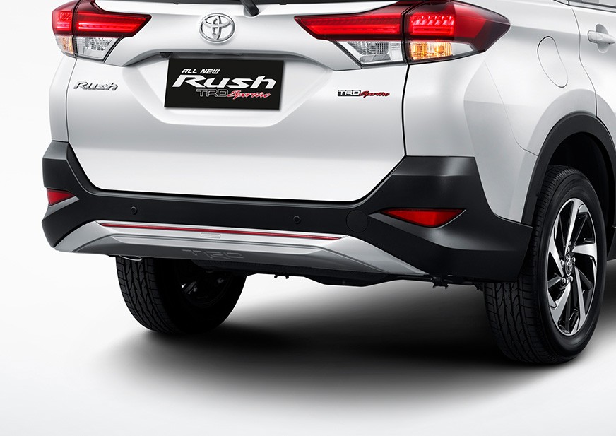 Rush versi Indonesia juga dibekalkan 6 beg udara, Kawalan Stabiliti Kenderaan (VSC), dan Bantuan Mula Daki (HSA), termasuk lampu depan dan belakang jenis LED, dan ciri masukan tanpa kunci atau keyless entry sebagai standard.