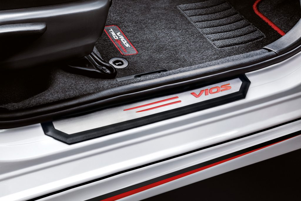 - Semua varian dilengkapkan plat sil pintu untuk melindungi kemasan cat selain menyuntik kesegaran penampilan. Kecuali Vios 1.5 J, plat keluli tahan karat itu juga bercahaya putih (amber untuk varian TRD) apabila pintu dibuka.